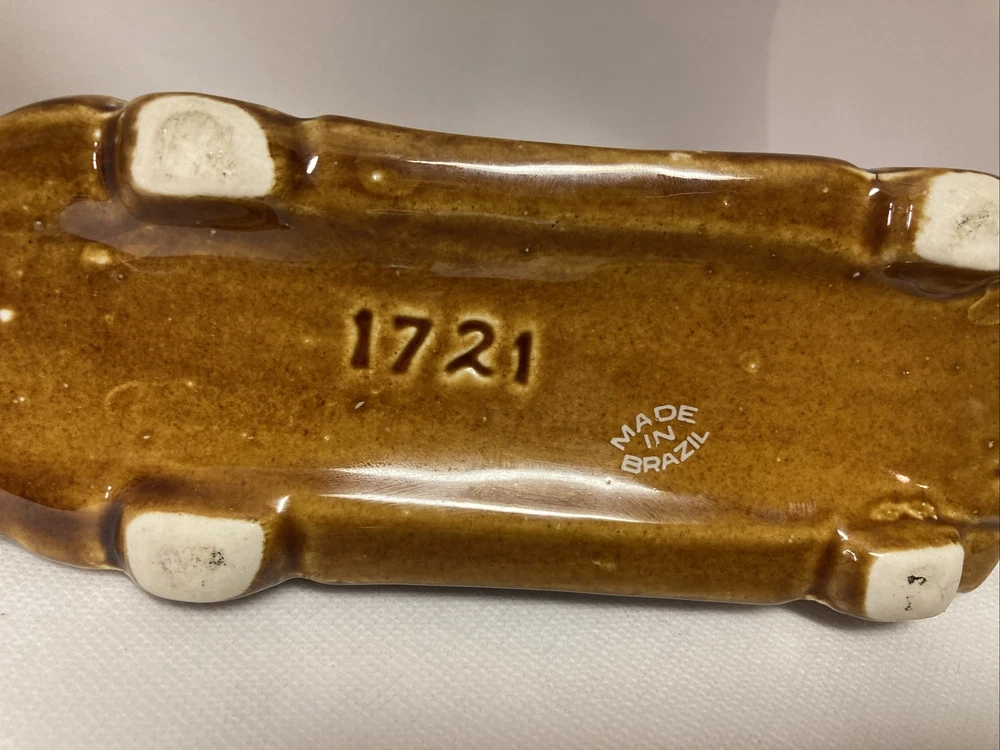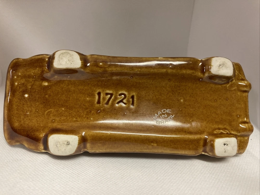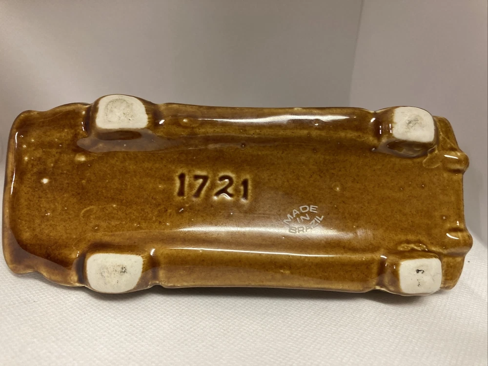 This ceramic ashtray is a unique addition to any collection. Crafted in Brazil, the ashtray is in the shape of a classic car and features an unmarked brand. Measuring approximately 6 inches in length and 2 1/2 inches in width and height, the ashtray is suitable for cigarettes and features a windproof design, waterproof, and has multipurpose features. The brown ashtray with a lead-free glaze has a commemorative and decorative design that showcases a classic / classic style car. The production style of the ashtray is art pottery and the production technique is studio crafted. It is an original, handmade piece that weighs 9.21 ounces. The backstamp is impressed and the item is dishwasher safe. Please see all pictures for a better visual description If you have any questions, contact me anytime