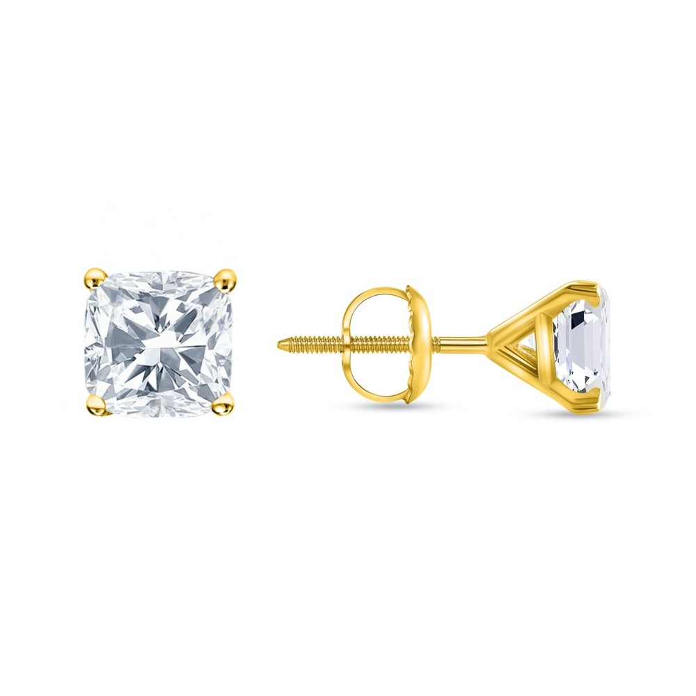 1.00 Carat Cushion Brilliant Cut Solitaire Stud Screw Back Martini Earrings in Solid 14K Yellow Gold These exquisite created diamond stud ear rings are crafted out of solid 14k yellow gold and brilliant created diamonds. This design of these stud earrings is one of the most desired and classy of all. They are set in a unique, secure, 4-prong martini style setting. They emit every shade of light that a natural diamond would emit. The radiance and fire of these created diamonds is equivalent if not superior to a natural diamond of a VVS1 Clarity, D Color, Excellent Cut. Brand --> Shine Brite With A Diamond Total Carat Weight (TCW) --> 1.00 Carat (0.50 Ct. each) Metal --> Real, Genuine, Solid Yellow Gold Metal Purity --> 14k (585) Gem Type --> Created Diamond Design --> Studs Main Stone Shape --> Cushion, Brilliant Cut Diamond Color --> D Diamond Clarity --> VVS1 Setting --> 4-Prong Martini Type of Post or Back --> Screw Back Number of Stones --> 2 Country of Manufacture --> United States Origin of Stones --> Created Diamond Availability --> Limited Quantity EVERY GEMSTONE COMES WITH A LIFETIME GUARANTEE! Our created diamonds are guaranteed to last a lifetime or we will replace them free of charge! So What Will I Be Receiving in the Mail? A Pair of Genuine Solid 14 Karat Yellow Gold Cushion Brilliant Cut Stud Earrings . An Elegant and Luxury Jewelry Box. Certificate of Appraisal with a Lifetime Warranty. REFUNDS We guarantee your satisfaction and offer a 30-day money-back return (or exchange) policy. If for ANY reason you are unsatisfied with your purchase, please contact us first before opening up a case or leaving negative/neutral feedback so that we could make things right! We are here to help YOU! SHIPPING All eligible items will ship free within 1 business day with USPS Priority Mail for expedited delivery. Please select the FedEx shipping options for even faster (overnight and 2-day) delivery. CONTACT US We're always available by e-mail through eBay messages 24 hours a day, 7 days a week. Please feel free to contact us anytime with any questions or concerns you may have.