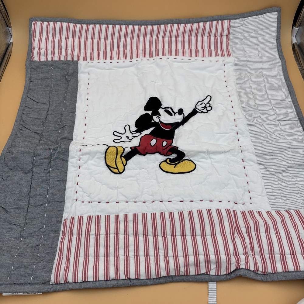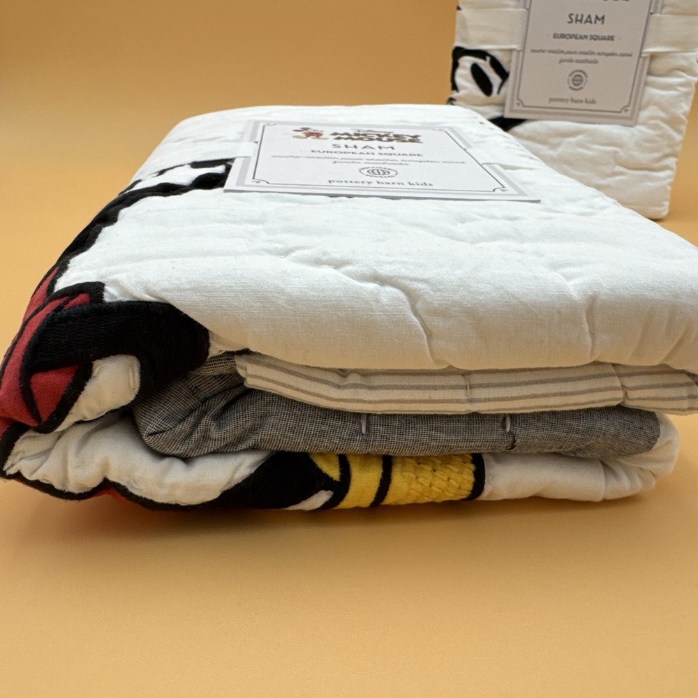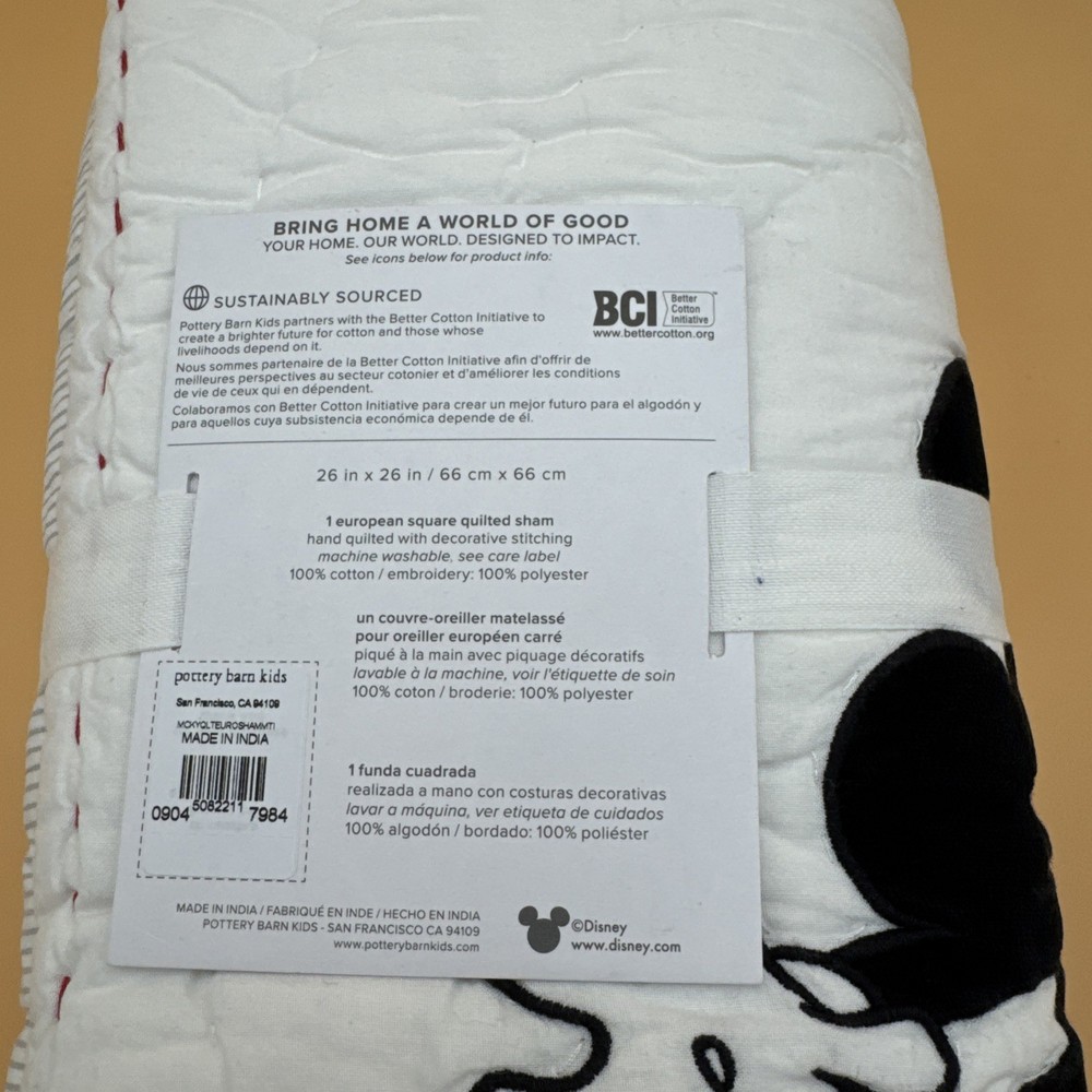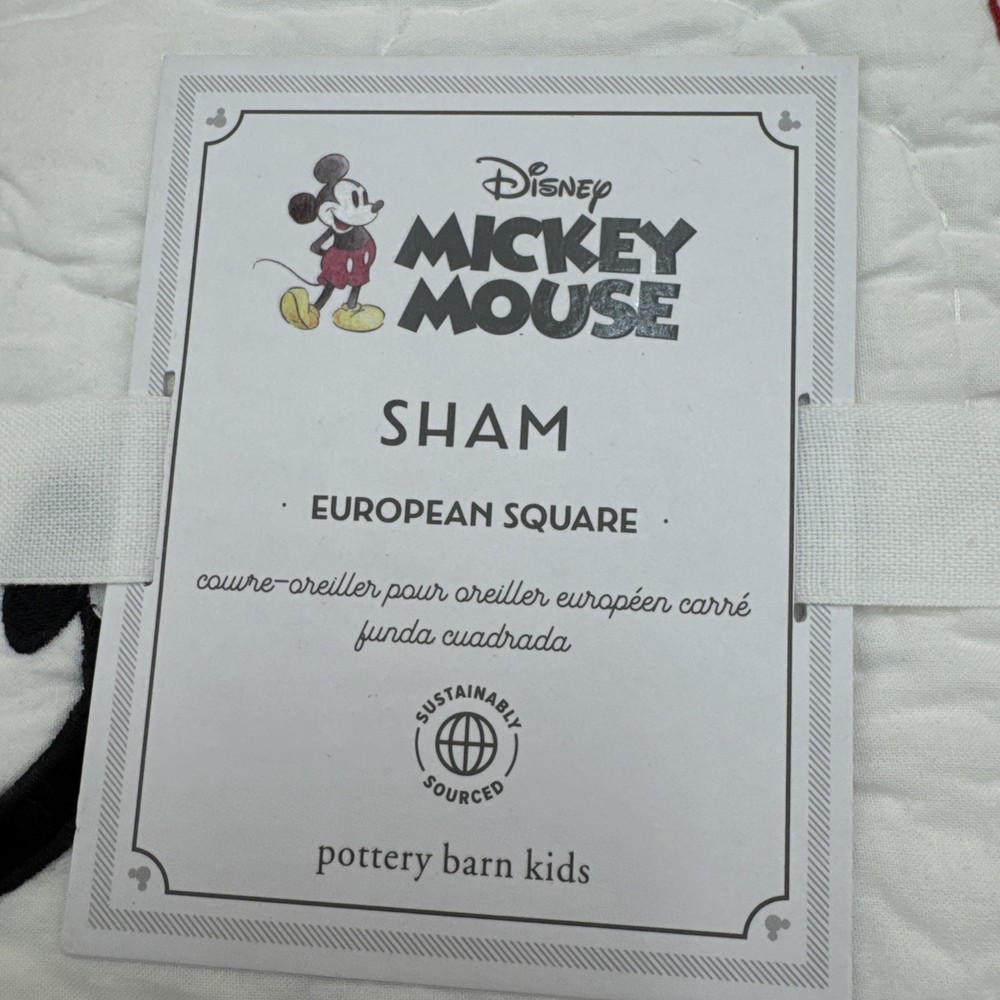 Listing is for 1 brand new square Mickey Mouse pillow sham. It is from Pottery Barn Kids and measure 26” x 26” or 66 cm x 66 cm. This is hand quilted with decorative stitching. Machine washable see care label. 100% cotton shams with the embroidery 100% polyester. The only time it was ever taken out of the package was for me to take the photo. I folded it back up and slid it back into the ribbon. Buyers choice of shipping options at checkout. Priority mail, or ground advantage.