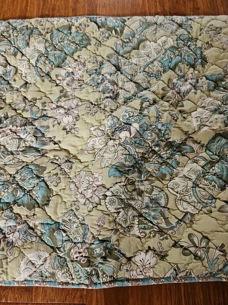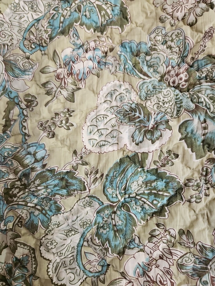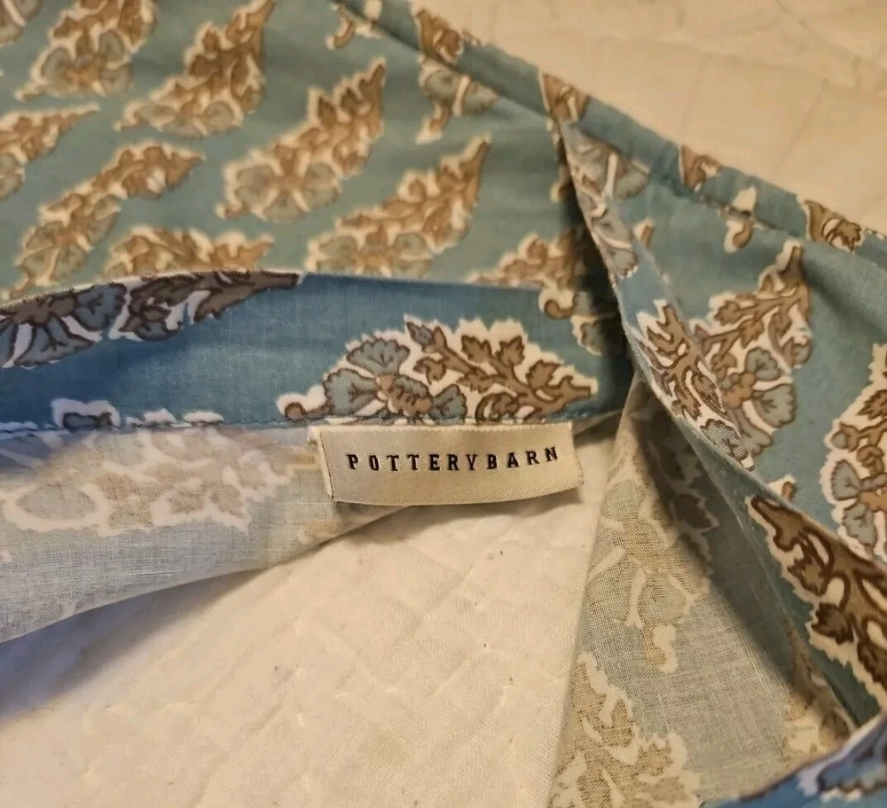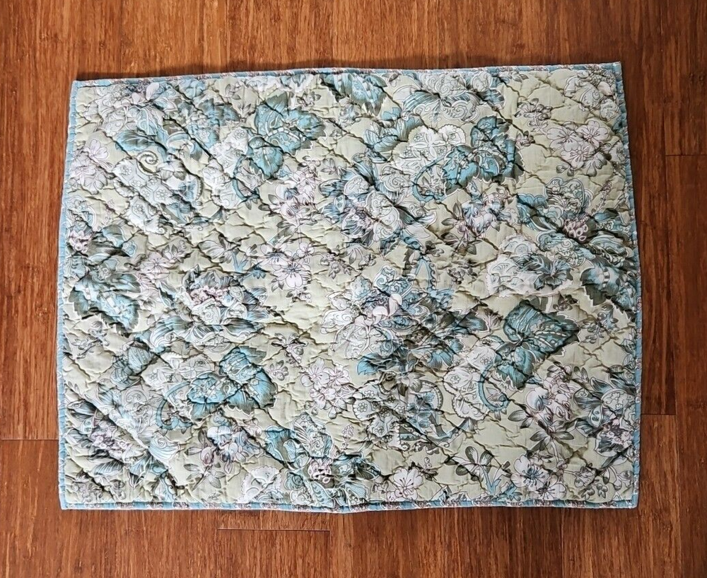 1 POTTERY BARN Neena Floral Quilted Standard Sham 100% Cotton Blue/Green Laundered & air dry smoke & pet free home...