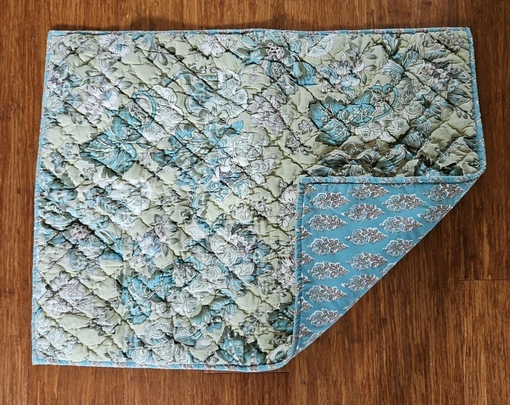 1 POTTERY BARN Neena Floral Quilted Standard Sham 100% Cotton Blue/Green Laundered & air dry smoke & pet free home