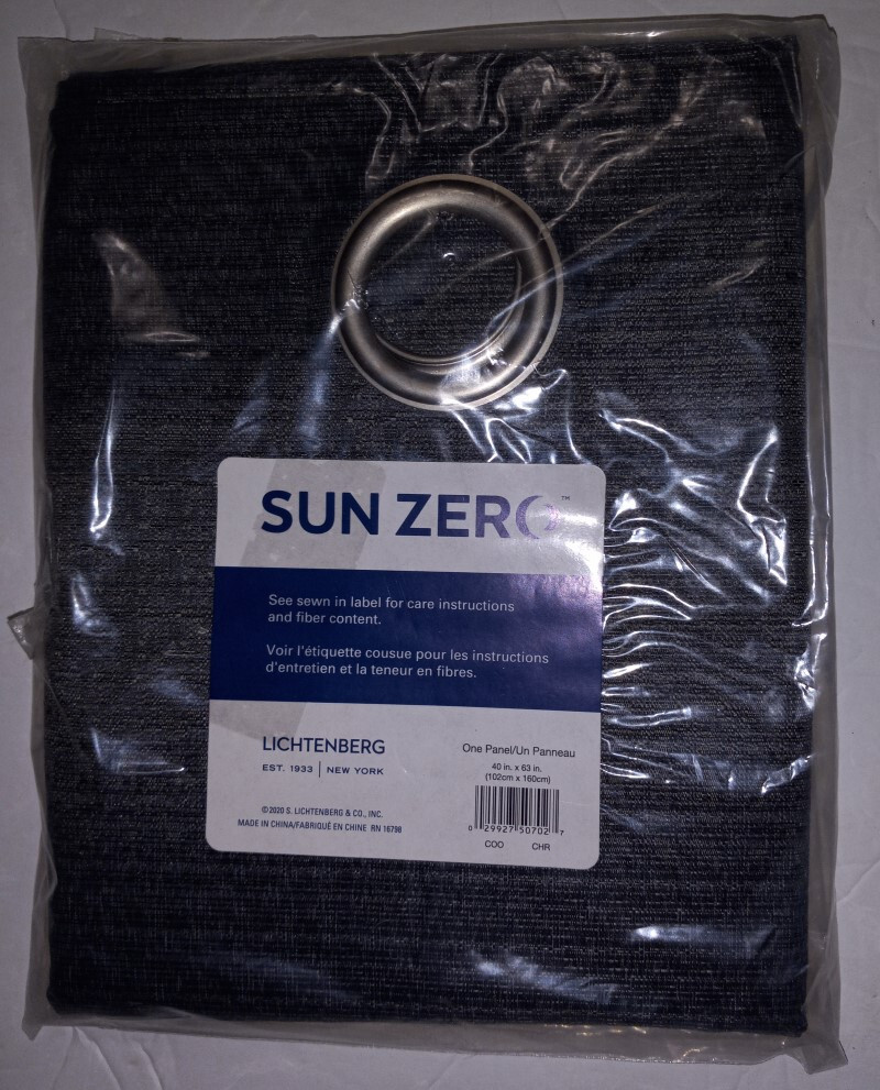 This eBay Offer Is For Two Sun Zero 40" x 63" Thermal Insulated Light Blocking Grommet Top Curtain Panels In Charcoal UPC 029927507027 RV $69.98 Sun Zero Cooper Curtain Panels offer energy efficiency and elevated design with a woven texture complemented with a modern metal grommet top for easy hanging on a standard curtain rod up to 1.5" in diameter. Sun Zero Thermal Insulated Room Darkening Curtains are laboratory tested to significantly reduce light exposure, offer outside noise reduction by up to 25%, and decrease energy lost through your windows by up to 40%. Comfort is optimized with thermal properties that help keep summer heat and winter chill out of your home. Hang in your living room for enhanced privacy, or in your bedroom for a sounder, more uninterrupted sleep. Sold as 2 panels. Measure carefully before selecting your desired size. Rod not included. Machine wash cold on gentle cycle. Use non-chlorine bleach when needed. Tumble dry on low heat, using a cool iron as needed. Unique textured print with Thermal Insulated Room Darkening technology Energy Efficient design reduces energy lost through your windows by up to 40% Thermal insulation helps you keep the summer heat and winter chill out of your home Noise reduction helps you get a sounder, more uninterrupted sleep Silver metal grommet top fits a standard curtain rod for easy hanging Number of Pieces: 2 Dimensions (Overall): 63.0 Inches (L), 40 Inches (W) Fabric Name: Jacquard Accommodates Pole Size: 1.5 Inches Indoor/Outdoor: Indoor Features: Noise reduction, Thermal Insulated, Energy Efficient Textile Material: 100% Polyester Includes: 1 Curtain Panel Required, Not Included: Rod Hanging style: Grommet Top Light Filtration: Room Darkening Care & Cleaning: Iron as Needed, Machine Dry, Machine Wash Brand: Sun Zero Model: Cooper Manufacturer:Lichtengerg UPC: 029927507041 Origin: China BIDDING/PURCHASE PROCESS: Unless otherwise stated, the item you see in the photos and what you read in the description is the exact item you will receive. For items of which we have multiples, the item sold will be the same make and model, and in very similar condition, to the one pictured. If you have any questions, or you are not sure about the item you are bidding on, please ask BEFORE placing your bid. Specifications of the items are taken from the manufacturer’s website or other sources online. It is the responsibility of the buyer to confirm compatibility of the product before purchasing. Warning: Items may have been exposed to contaminants inside and outside a store environment to include but not limited to odors from body, smoke, colognes, food, smog, chemical, cleanser or any other olfactory based scent, pollen, or other airborne irritant. AFTER PURCHASE: If there are after-purchase issues that arise, please contact us directly so that we can find a resolution before leaving feedback. RETURNS: Please contact us directly with any issues that warrant a return. SHIPPING: Please make sure your address is up to date. We ship USPS, unless otherwise stated in the listing, and provide tracking information via eBay’s automated system. We do our best to ship within one business day of receiving a cleared payment. PAYMENT: Please submit payment within 3 days of winning your auction. Unpaid items will be reported. If you require additional time to make payment, please contact us directly. Note: The digital images we display have the most accurate color possible. However, due to differences in computer monitors, there may be variations in color between the actual product and your screen. 637-VZ