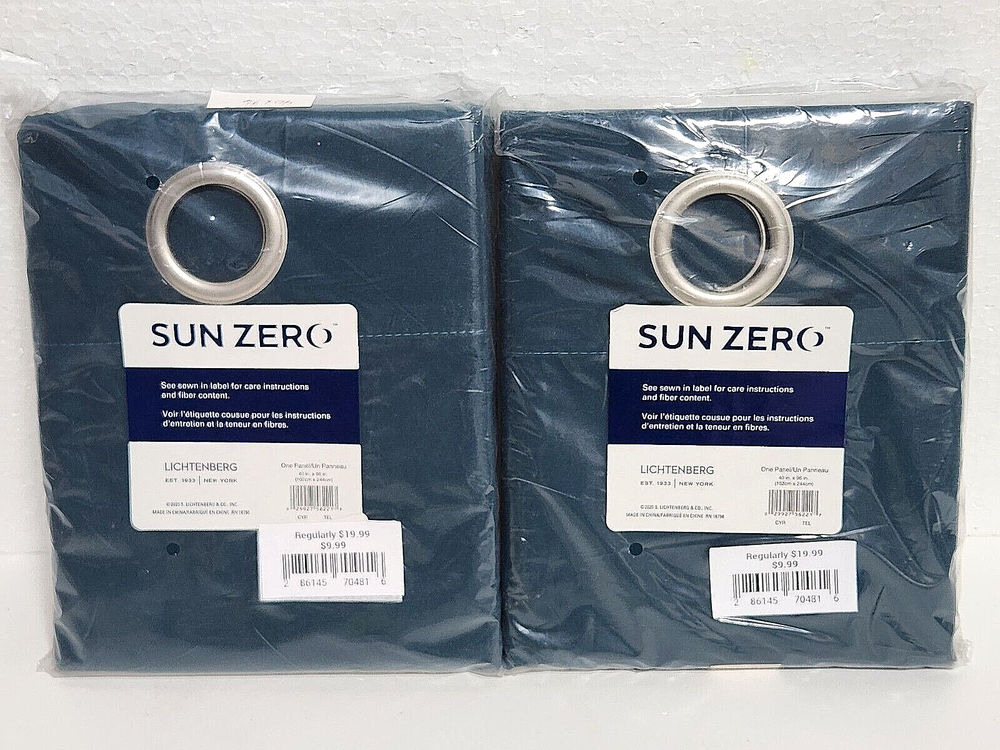 Check out all our Sun Zero Curtain Panels up for sale this week. Click here to check out our Ebay Store This is for 2 single panel packages brand new and still sealed. Highlights Total Blackout technology blocks out 100% of outside light while enhancing privacy Thermal insulation helps keep summer heat and winter chill out of your home Energy efficient design reduces energy lost through your windows by up to 35% Noise reduction up to 35% helps you get a sounder, more uninterrupted sleep Built-in metal grommets fit curtain rods up to 1.5" in diameter Number of Pieces: 2 Dimensions (each panel): 96 Inches (L), 40 Inches (W) Fabric Name: Plain Weave Textile Material: 100% Polyester Indoor/Outdoor: Indoor Accommodates Pole Size: 1.5 Inches Required, Not Included: Rod Hanging style: Grommet Top Light Filtration: Blackout Single Panel Weight: 1.75 POUND Care & Cleaning: Machine Dry, Iron as Needed, Machine Wash UPC : 029927562217 Item Number (DPCI) : 068-09-2303 Origin : Imported