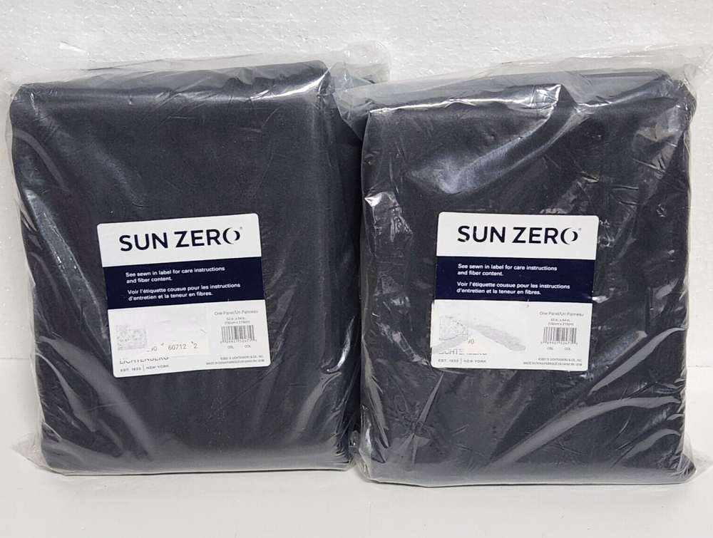 Check out all our Sun Zero Curtain Panels up for sale this week. Click here to check out our Ebay Store This is for 2 single panel packages brand new and still sealed. Highlights Extreme Blackout technology blocks out 100% of outside light Energy Efficient design reduces energy lost through your windows by up to 50% Thermal properties help keep summer heat and winter chill out of your home Noise reduction by up to 35% helps you get a sounder, more uninterrupted sleep Includes 2 single rod pocket curtain panels made from machine washable material Number of Pieces: 2 Dimensions (each panel): 84.0 Inches (L), 52 Inches (W) Fabric Name: Plain Weave Features: Noise reduction, Energy Efficient Textile Material: 100% Polyester Indoor/Outdoor: Indoor Accommodates Pole Size: 1.5 Inches Includes: 1 Curtain Panel Required, Not Included: Rod Hanging style: Rod Pocket Light Filtration: Blackout Single Panel Weight: 2.56 POUND Care & Cleaning: Iron as Needed, Machine Wash, Machine Dry