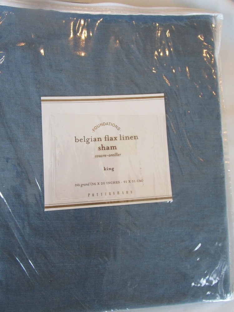 Up For Auction is - 1 Pottery Barn Belgian Flax Linen Sham king strong blue New w tag Smoke and pet free home....
