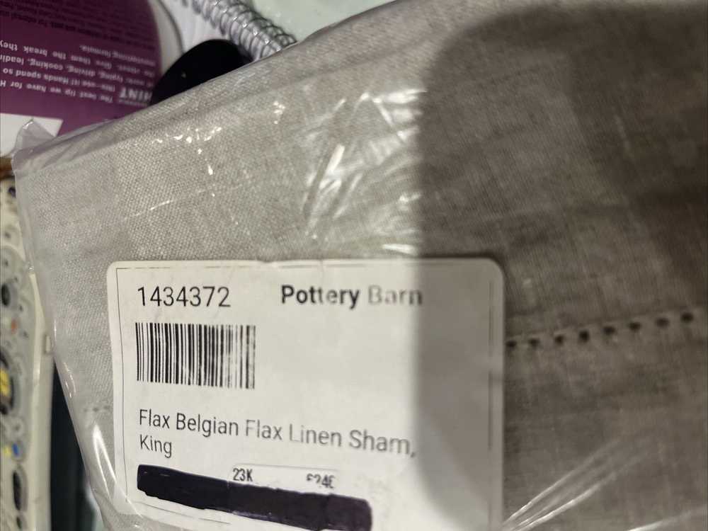 Up For Auction is - 1 Pottery Barn Belgian flax linen sham King natural New Lustrous, smooth and cool to the touch, our Belgian Flax Linen Sham is woven from fine Belgian flax. It is enzyme washed for added softness, and its classic style complements a variety of patterns and styles. Linen woven from 100% Belgian flax. Smoke and pet free home.