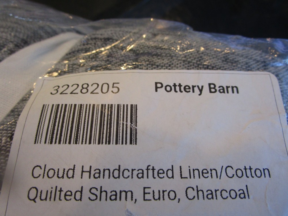 Up For Auction is - 1 Pottery Barn Cloud Handcrafted linen cotton Sham Euro quilted charcoal New Smoke and pet free home....
