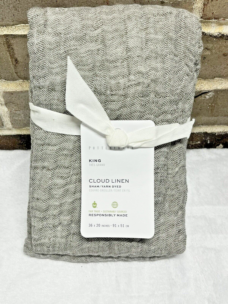 Brand New With Tag YOU ARE GETTING ONE KING SHAM ONLY Pottery Barn Color is Loden Retails for $69.50 so getting a good deal here Sham features an envelope closure. Ethically handcrafted to the Nest Standards for homes and small workshops. STANDARD 100 by OEKO-TEX® Certified: WSI Certificate #: 14.HUS.42449 HOHENSTEIN HTTI: tested for 1000+ harmful substances to keep you and your family safe from chemicals common to textile manufacturing. Imported. Machine wash in cold water, gentle cycle. Non-chlorine bleach when needed. Tumble dry on low. DIMENSIONS King Sham: 20" h x 36" w