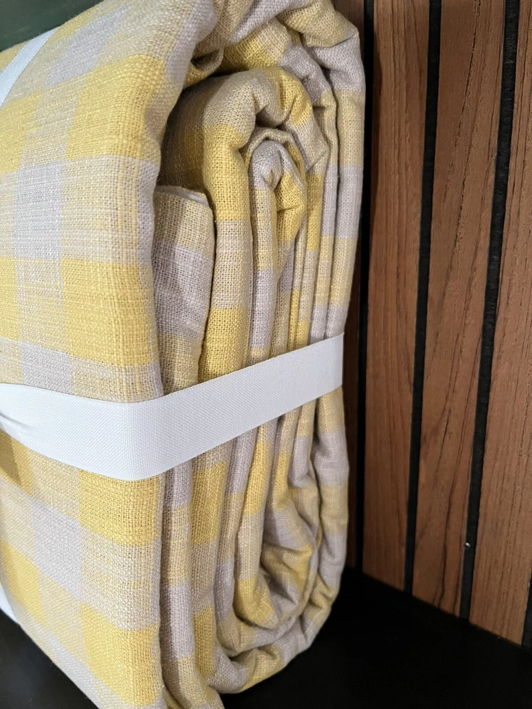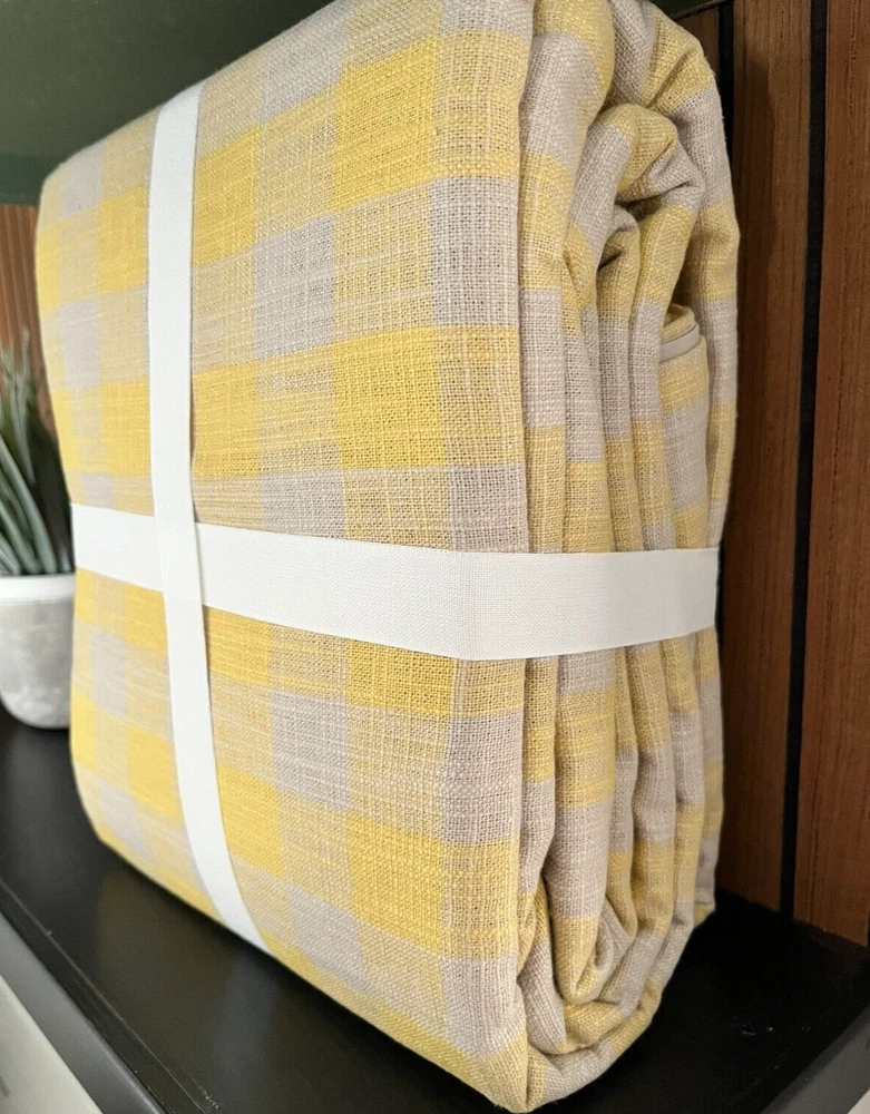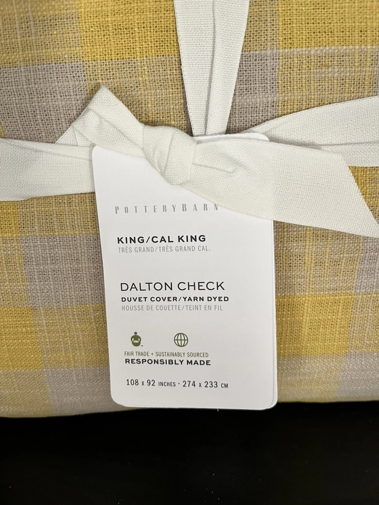 Brand New With Tag and in the package This is a king or California King Size which is 108" x92" You are getting 1 Duvet Cover Only Retails for $189.00 + tax, so getting a good deal here This is the yellow and cream pattern (cream looks more of a light gray/beige to me) This quintessential checkered bedding brings warm, rustic style to your space year-round. Tailored from a cotton-linen blend that’s yarn-dyed for lasting color, each piece only becomes softer with age. Front is 52% cotton and 48% linen. Duvet reverses to 100% cotton. Reverses to solid. Features a hidden button closure with inner ties to keep insert in place. Machine wash. Imported.