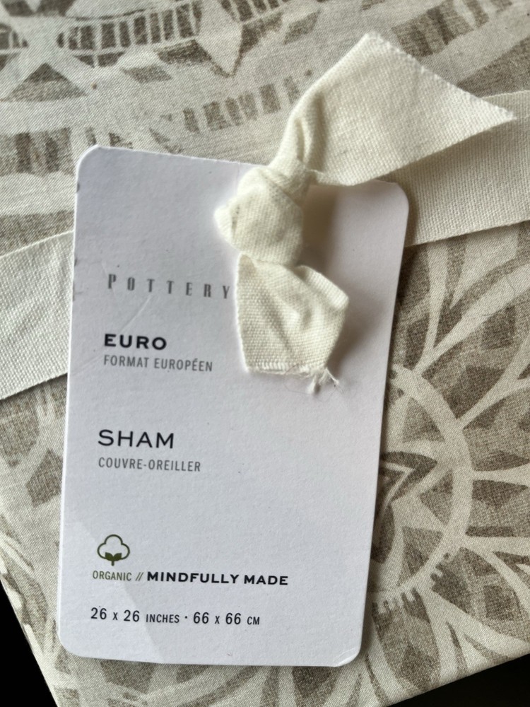 Brand New With Tag You are getting 1 Euro Size Pillow Sham 26" x 26" 100% Organic Cotton This is a medallion look Pattern, very pretty Pottery Barn Color is Taupe...