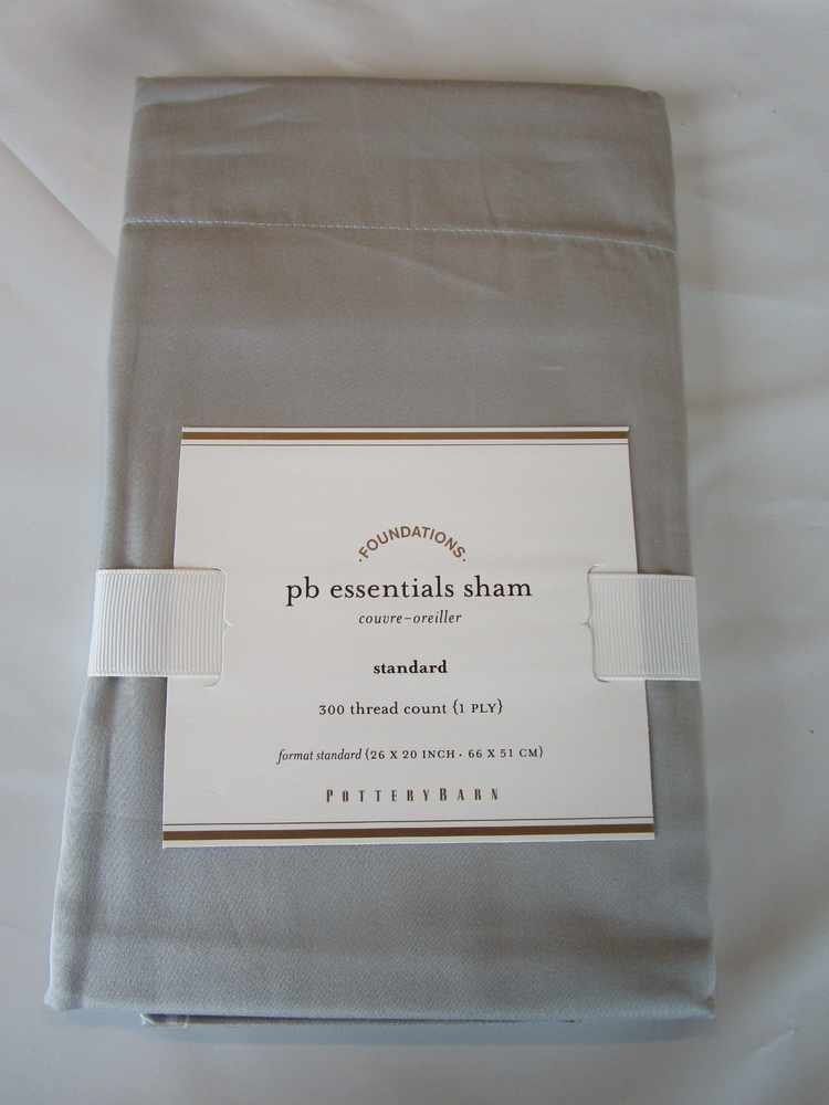 Up For Auction is - 1 Pottery Barn Essentials 300 TC standard sham gray mist New lining cut Smoke and pet free home.