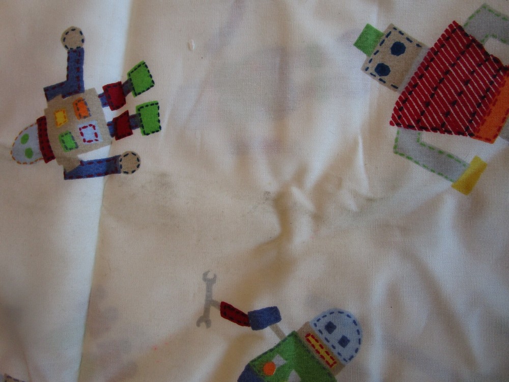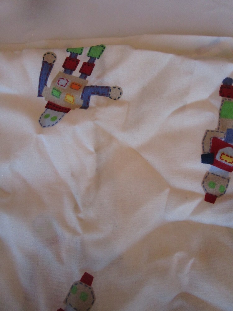 This adorable Pottery Barn Kids robot sham is in great condition with only light marks—barely noticeable! Perfect for a fun, playful bedroom. Comes from a clean, smoke-free, pet-free home. A must-have for little robot fans!