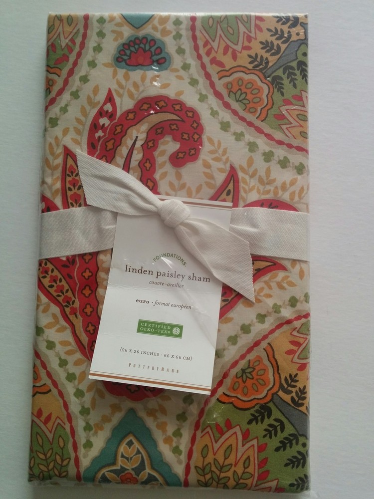 1 Pottery Barn Linden Paisley Euro Sham NWT Red 26 x 26 inches Stored in pet / smoke free home...