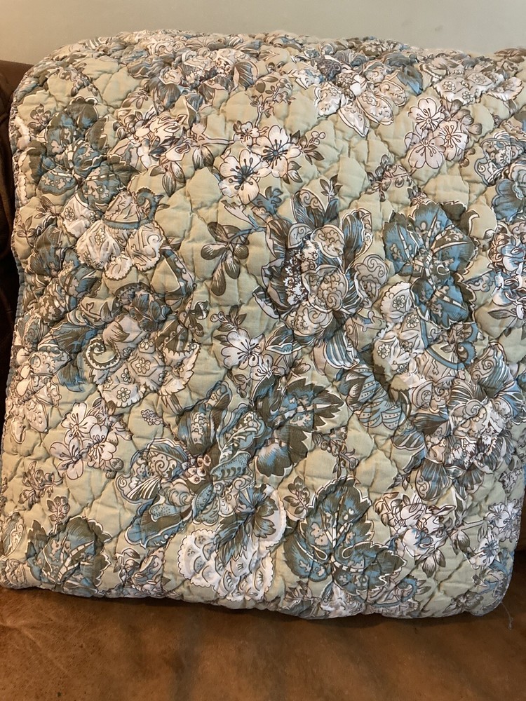1 Pottery Barn Neena Floral Quilted Standard Pillow Sham 100% Cotton Green Blue. Condition is Pre-owned. Standard Sz 18 c 24. Shipped with USPS Ground Advantage....