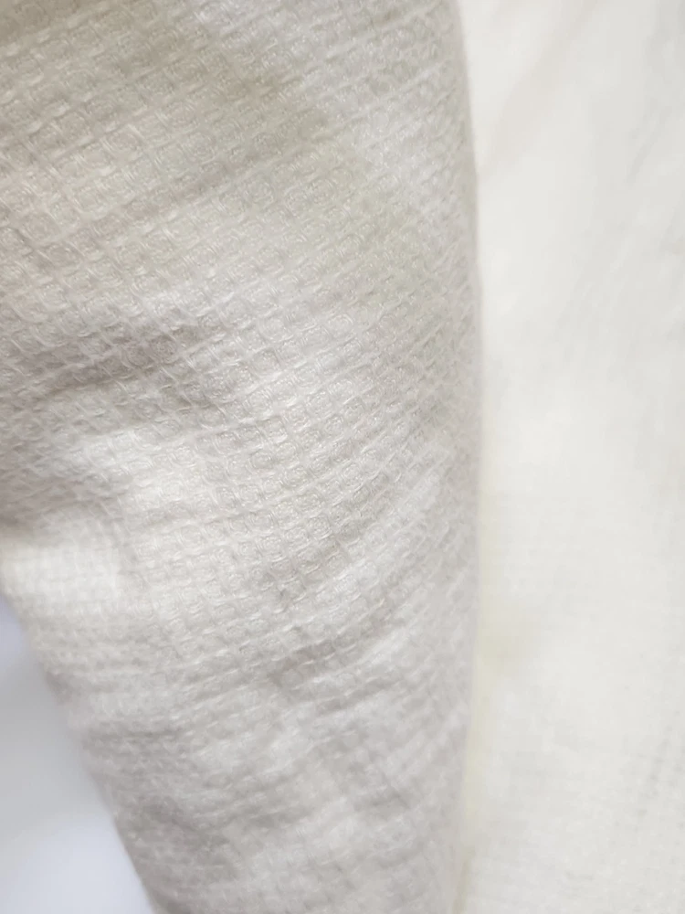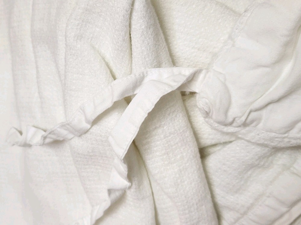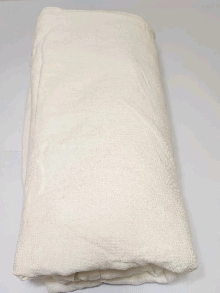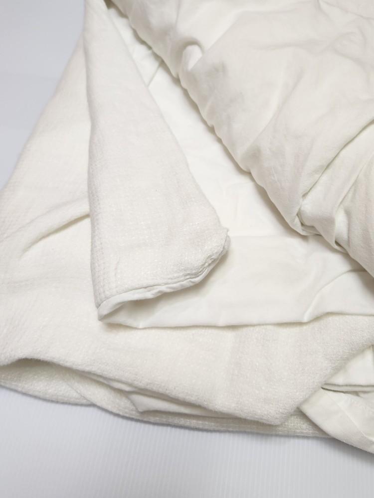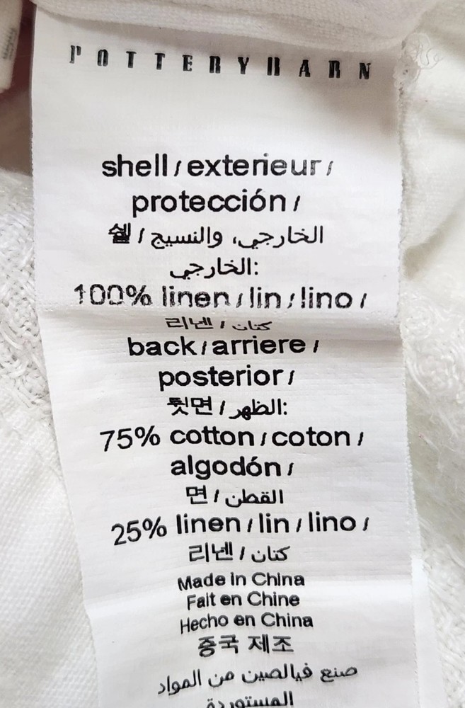 POTTERY BARN KING/CAL KING WHITE DUVET COVER Front is woven from 100% European Flax Linen; reverse is 100% cotton. Breathable European flax linen is ideal for warm or cool temperatures and its durability lets you love it for years. Designed with a waffle texture. Soft and cool to the touch. OEKO-TEX® STANDARD 100: tested for 1000+ harmful substances. 14.HUS.42449 HOHENSTEIN HTTI. Duvet features a hidden button closure with inner ties that keep insert in place; sham features an envelope closure. Care Linen will get softer with every wash. Machine wash in cold water separately on gentle cycle. Use only non-chlorine bleach, if needed. Line or tumble dry on a low temperature. Dimensions King/Cal. King Duvet: 92" l x 108" w This is silod white-pictures look ivory. Excellent condition- no pulls- recently laundered. From clean smoke free home.