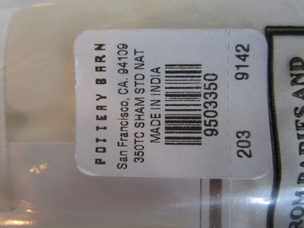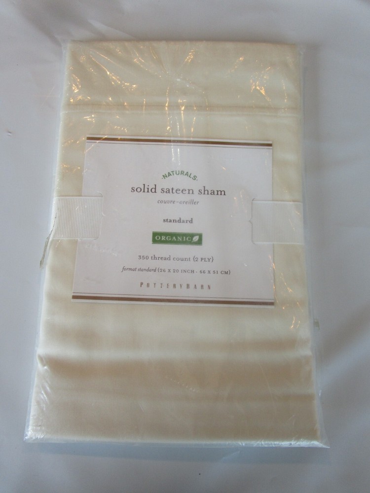 Up For Auction is - 1 Pottery Barn solid sateen 350TC standard sham natural New with tag Smoke and pet free home.