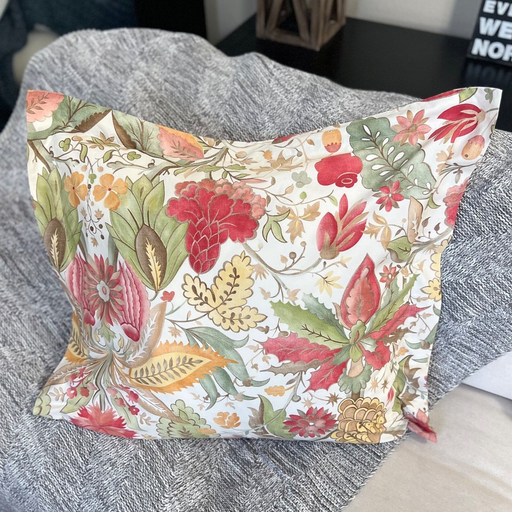 1 (ONE) Pottery Barn Courtney Floral Palampore Pillow Sham* *Pillow insert not included. Color: Cream Red Green Yellow Size: Euro 26x26 inches Gently pre-owned condition. Washed, pressed and ready to use. Will be packaged with care and shipped via USPS. All items are guaranteed to be as described. They will arrive fresh and ready for use. Please see our feedback for experience of others. Photos are of actual item you will receive w/ exception of a stock photo or two from an online catalog. If you have any questions before the sale, please reach out for clarification. Message me with any questions!