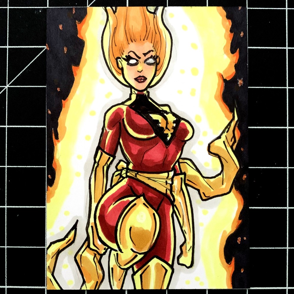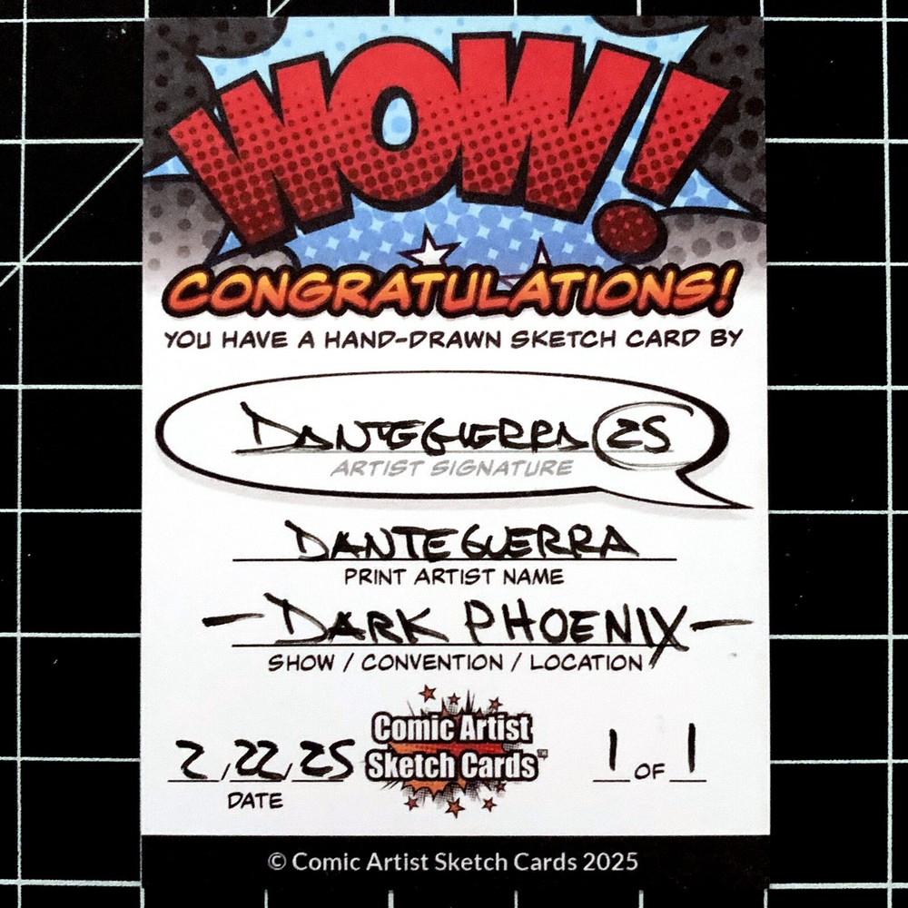 This is a one of a kind hand-drawn sketch card of Marvel Comics and Rivals X-Men Dark Phoenix by Dante H Guerra! Sketch Card is 2.5" x 3.5". Created with pencil, Prismacolor colored pencils, Copic markers, and black Micron pens. Comes in a clear sleeve and top loader with pullout tape for easy removal. No returns. Ask questions before bidding. If you like this sketch card, make sure to visit my eBay store. There are so many different sketch cards that you might find something you were not looking for! Here are the characters that I have made sketch cards out of. I am constantly added more! Spider-Man, Spider-Woman, Jubilee, Lady Death, Vampirella, Wolverine, Ahsoka Tano, Harley Quinn, Jabba the Hutt, Rick and Morty, Venom, Ms. Marvel, Spider-Gwen, Miles Morales, Cindy Moon Silk, Invincible, Omin-Man, SuperGirl, SuperMan, Daredevil, Elektra, Ghost Spider, Batman, Power Girl, Mary Jane, X-23, Slave Leia or Huttslayer Leia, Savage Land Rogue, Hulk, Magik, She-Hulk, Black Cat, The Maxx, Red Sonja, Jean Grey, Psylocke, Poison Ivy, Goblin Queen, Spawn, Wonder Woman, Atom Eve, Bowsette, Death, Rhino, Green Goblin, Invisible Woman, Dark Phoenix, Phoenix, Allen the Alien, Rogue, Deadpool, Darth Maul, General Hera Syndulla, Pokemon Misty, Joker, Han Solo, Baby Yoda or Grogu, Stay Puff Marshmallow Man, Boba Fett, Pikachu, Velma, Mystique, Catwoman, Scarlet Witch, Raven, Jane Foster, Frankenstein, Wednesday Addams, Marvel Rivals