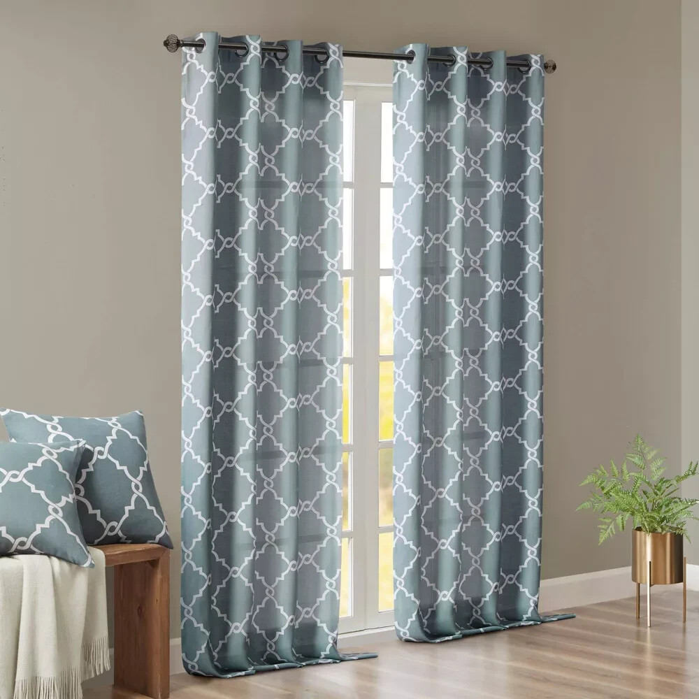 ⚡️1 pc Light Filtering Sereno Fretwork Print Curtain Panel - Madison Park -Green Number of Pieces: 1 Dimensions (Overall): 95 Inches (L), 50 Inches (W) Fabric Name: Basket Accommodates Pole Size: 1.25 Inches Indoor/Outdoor: Indoor Textile Material: 68% Polyester, 29% Cotton, 3% Rayon Includes: 1 Curtain Panel Required, Not Included: Rod Hanging style: Grommet Top Light Filtration: Light Filtering Single Panel Weight: 3.03 POUND Care & Cleaning: Air Dry, Wash With Like Colors, Machine Wash Origin : Imported