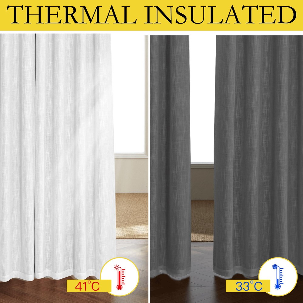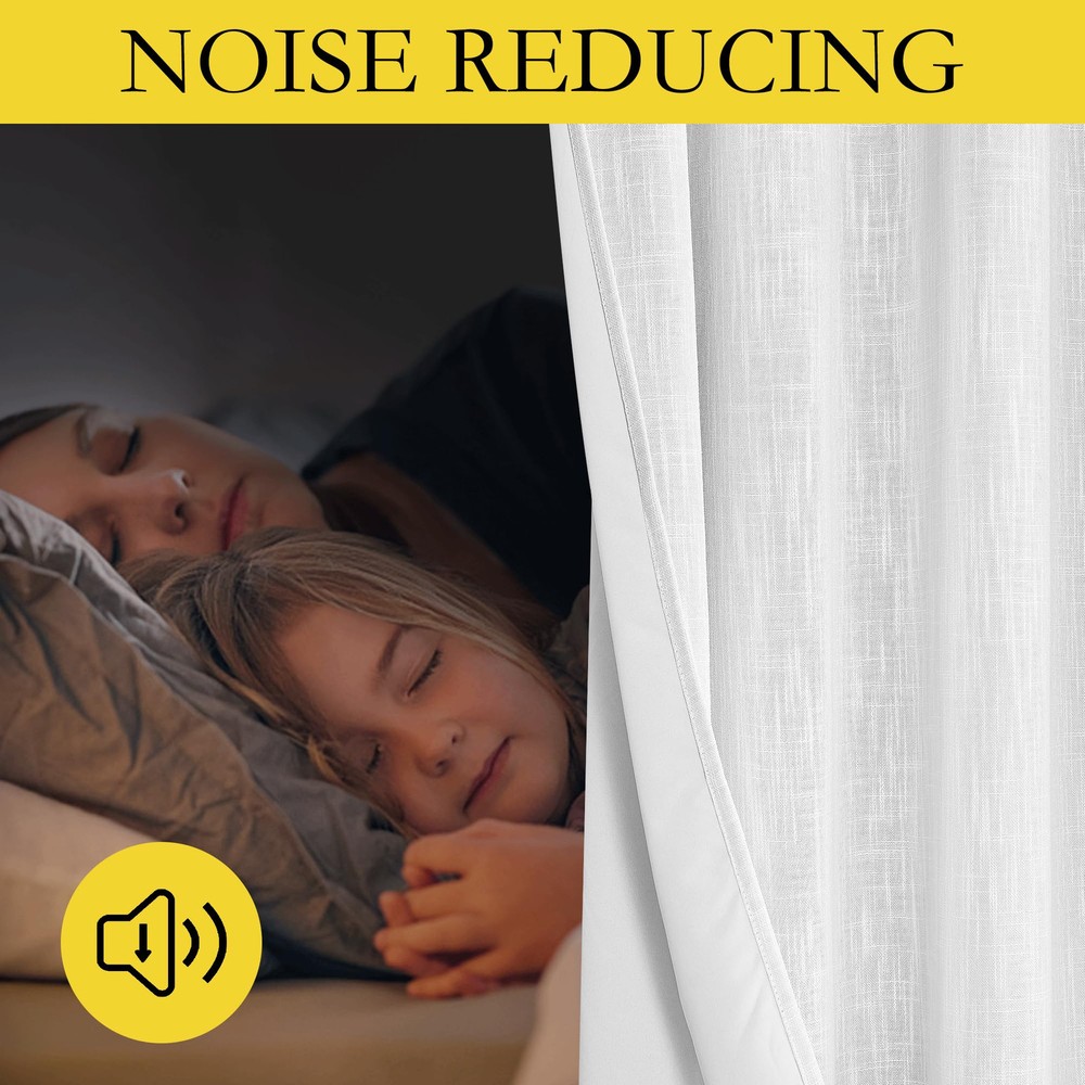 These blackout curtains are a game-changer for anyone who craves total darkness while sleeping! The thermal insulation keeps my room cool and blocks every bit of sunlight, even during bright summer mornings. The linen fabric looks stylish and the silver grommets add a nice rustic touch to my bedroom. Super easy to hang, and they feel durable—definitely worth it for peaceful, uninterrupted sleep. Super soft yet effective at keeping light out.