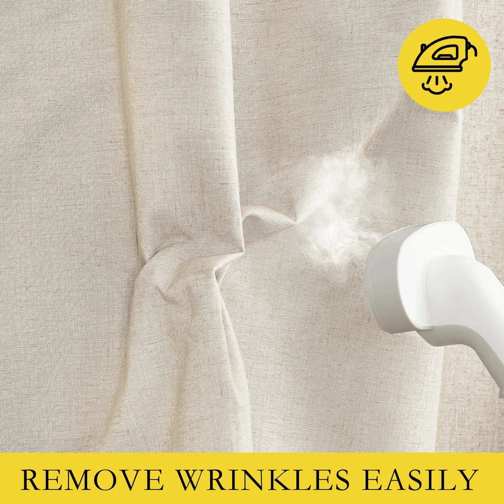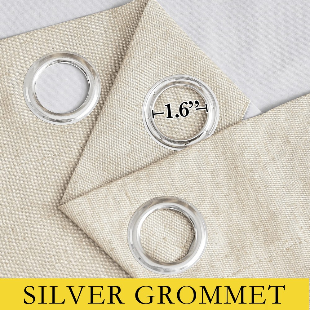 No matter where you live, California, Texas or even Florida, if you have the annoying sunshine of torture, and need a completely dark sleep environment, you can choose our 100% blackout linen curtains. No matter how strong the unwanted light was, you can have a good sleep. Ready Made: 2 panels per package. Each classic linen blackout curtain measures 52" wide x 84" long (Total width is 104"). The unique design of silver grommet (1.6-inch inner diameter) creates farmhouse style for your house, which makes the curtains easy to install and slide. 100% Blackout: The real blackout curtains on the market. Linen blackout curtains crafted with white liner backing make the drapes completely keep out the 100% sunlight and UV ray. The greatest benefit is to offer you a real dark environment, bringing you a good night's sleep during the day. Wide Compatibility: These durable elegant linen blend blackout curtains will decorate your windows and rooms with new sense. Perfect for bedroom, living room, kitchen, patio, room divider, functional and Morden. While still have top performance on energy saving and noise reducing, create airy, breathable, and rustic style. Flax Linen Blend: Linen blackout curtains bring both casual warmth and refined style to the room. The weave of the natural yarn-dyed fibers creates dimensional highs and lows for added depth. This curtain is an elegant option for any room in the home. Lab test shows these awesome curtain panels are environmental and vinyl free. Washing Tips: real linen texture is wrinkle-free and has a great vertical sense. But for the material is made from linen, to keep the original shape, you'd better dry-cleaning or wash the curtains with netural detergent.