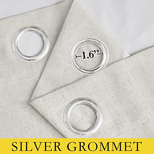 No matter where you live, California, Texas or even Florida, if you have the annoying sunshine of torture, and need a completely dark sleep environment, you can choose our 100% blackout linen curtains. No matter how strong the unwanted light was, you can have a good sleep. Ready Made: 2 panels per package. Each classic linen blackout curtain measures 52" wide x 63" long (Total width is 104"). The unique design of silver grommet (1.6-inch inner diameter) creates farmhouse style for your house, which makes the curtains easy to install and slide. 100% Blackout: The real blackout curtains on the market. Linen blackout curtains crafted with white liner backing make the drapes completely keep out the 100% sunlight and UV ray. The greatest benefit is to offer you a real dark environment, bringing you a good night's sleep during the day. Wide Compatibility: These durable elegant linen blend blackout curtains will decorate your windows and rooms with new sense. Perfect for bedroom, living room, kitchen, patio, room divider, functional and Morden. While still have top performance on energy saving and noise reducing, create airy, breathable, and rustic style. Flax Linen Blend: Linen blackout curtains bring both casual warmth and refined style to the room. The weave of the natural yarn-dyed fibers creates dimensional highs and lows for added depth. This curtain is an elegant option for any room in the home. Lab test shows these awesome curtain panels are environmental and vinyl free. Washing Tips: real linen texture is wrinkle-free and has a great vertical sense. But for the material is made from linen, to keep the original shape, you'd better dry-cleaning or wash the curtains with netural detergent.