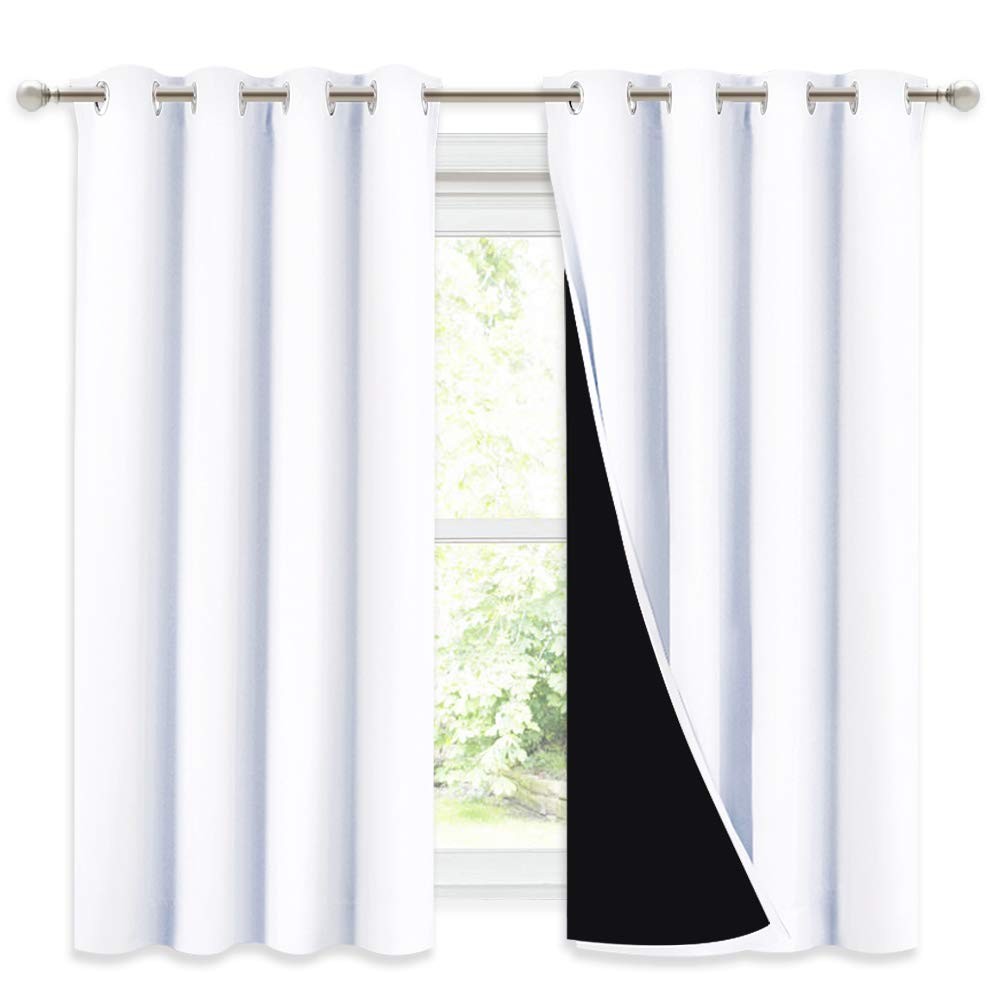 No matter where you live, California, Texas or even Florida, if you have the annoying sunshine of torture, and need a completely dark sleep environment, choose our 2 layers lined curtains. No matter how strong the unwanted light was, you can have a good sleep. Different from other regular one layer blackout curtains, Thermal Insulated Blackout Lined Curtains go beyond that mundane function and provide the best benefits. FIT NICELY: Package includes 2 panels blackout drapes with black liner backing. 1.6" Grommet fits various standard or decorative curtain rod/pole. Due to grommet design, remember they narrow when you put them on a pole. Become shorter because of sewn into a 3-inch header with grommets. Particularly suitable: living room, kitchen, bedroom, baby room, villa, hall, and department, etc. MULTIFUNCTION: Lined Draperies are thick enough to blocks out unwanted light completely and noise, encouraging day sleepers and the ones who have trouble falling asleep have a good sleep. Not only that but also make your resting zone truly blissful. They would be perfect for any home theater and supply you with the enjoyment of watching TV in real darkness. The sophisticated designs allow you to brighten your home decor, making your living space more lively. Protect your furniture, floors, and artwork from the ravages of the sun. Lined Grommet Curtains have kept the room much warmer in winter and also block a lot of heat during summer, relieving the strain on home heating and cooling while reducing energy budget. TIPS: Machine washable, recommended hand wash or dry cleaning. Wash the water temperature below 86℉. Advocate for the use of flexible detergents, no bleaching. Low-temperature ironing if necessary. NOTE : Due to different screen displays, the color of the actual item may vary slightly from the above images. Ready Made: 2 panels per package. Each Classic Lined Curtain measures 52" wide x 54" long (Total width is 104"). The unique design of the silver grommet (1.6 inch inner diameter) creates casual elegance for your house, which makes the curtains easy to install and slide. Blackout Effect: The real blackout curtains on the market. Sew in black liner backing makes the drapes thick enough to completely keep out the sunlight and uv ray. The benefit is to offer you a real dark environment, bringing you a good night's sleep during the day. Noise Reducing: Heavyweight Blackout Lined Curtain Panels can be a good sense of drape, making the window completely closed, to cut noise down. The effect of absorbing sound is 2 times higher than the ordinary 1 layer of curtains so that at any time you are not disturbed by noise. Unique Design: Draperies constructed with 2 layers are all triple weave blackout fabric, balancing room temperature by insulating against summer heat and winter chill meanwhile protect privacy. No chemical coating, no formaldehyde, bring harmony to your family. Easy Care: Quality finishing will withstand years of use. Do not wash the blackout curtains in water, just dry cleaning. Low temperature ironing. Don't use sharp things scratching curtains.