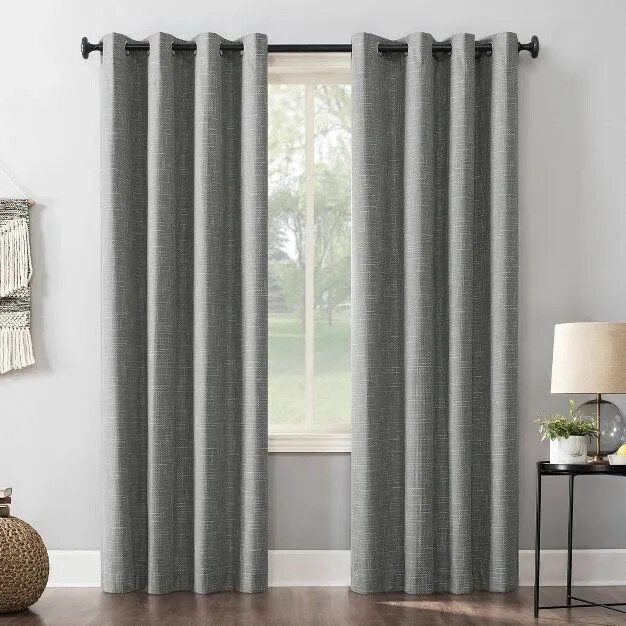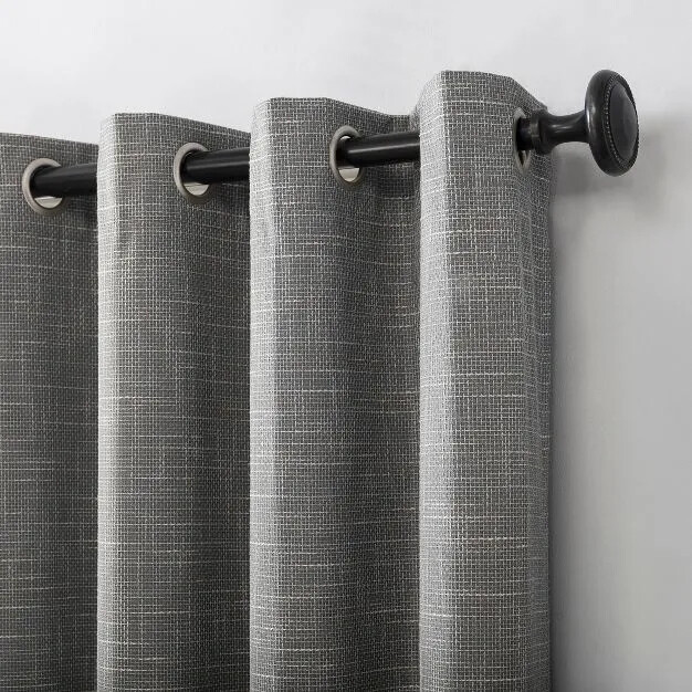 Intersecting burlap weave texture adds a hint of rustic chic Extreme Thermal Blackout technology blocks out 100% of outside light Thermal properties help keep summer heat and winter chill out of your home Noise reduction by up to 40% helps you get a sounder, more uninterrupted sleep Built-in metal grommets fit curtain rods up to 1.5" in diameter Number of Pieces: 1 Dimensions (Overall): 84 Inches (L), 52 Inches (W) Fabric Name: Jacquard Textile Material: 93% Polyester, 7% Rayon Accommodates Pole Size: 1.5 Inches Indoor/Outdoor: Indoor Hanging style: Grommet Top Light Filtration: Blackout _____________________________________ Our Commitment to Your Satisfaction: If there is a problem with your item, We Will Take Care of It: If you receive an item that is defective, damaged, or not as described above, we will resolve the problem as quickly as possible at No Cost To You. We will work with you to arrange for repair or replacement if possible. We will issue a return label if return is needed, and we will file a shipping damage claim. You can expect a full refund of your original payment within three business days of our receipt of the returned item. If you've simply had a change of heart or made an incorrect purchase, we understand. You're welcome to return the item in its original condition, along with all packaging and accessories. PLEASE NOTE; that in such cases, you'll be responsible for both the original and return shipping costs. It's important to mention that items labeled "AS IS" with a "NO RETURNS" policy are exempt from our standard return procedure. Unfortunately, these items cannot be returned for any reason. Should you need to cancel your order before it ships, we accommodate mutual cancellations with a nominal $10.00 restocking fee. This fee helps cover the administrative time and processing costs associated with the cancellation.
