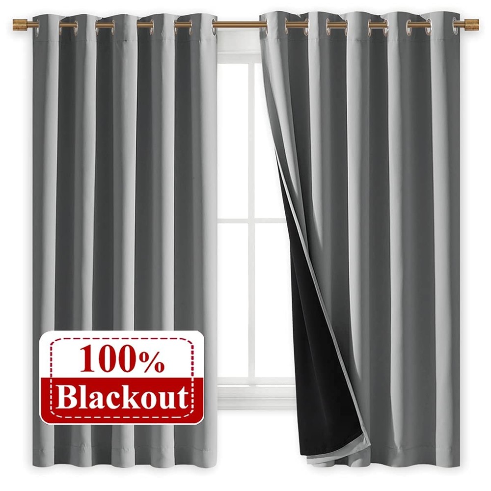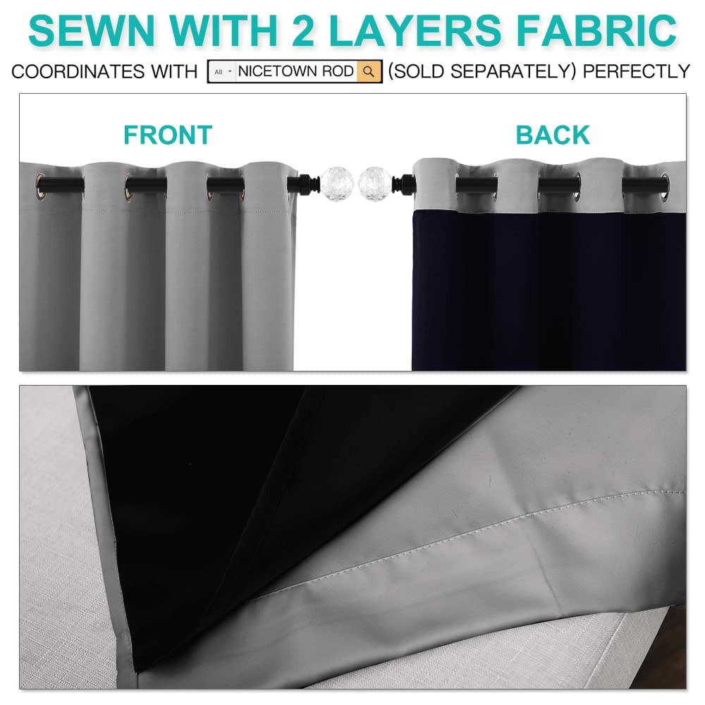No matter where you live, California, Texas or even Florida, if you have the annoying sunshine of torture, and need a completely dark sleep environment, choose our 2 layers lined curtains. No matter how strong the unwanted light was, you can have a good sleep. Different from other regular one layer blackout curtains, NICETOWN Thermal Insulated Blackout Lined Curtains go beyond that mundane function and provide the best benefits. FIT NICELY: Package includes 2 panels blackout drapes with black liner backing. 1.6" Grommet fits various standard or decorative curtain rod/pole. Due to grommet design, remember they narrow when you put them on a pole. Become shorter because of sewn into a 3-inch header with grommets. Particularly suitable: living room, kitchen, bedroom, baby room, villa, hall, and department, etc. MULTIFUNCTION: Lined Draperies are thick enough to blocks out unwanted light completely and noise, encouraging day sleepers and the ones who have trouble falling asleep have a good sleep. Not only that but also make your resting zone truly blissful. They would be perfect for any home theater and supply you with the enjoyment of watching TV in real darkness. The sophisticated designs allow you to brighten your home decor, making your living space more lively. Protect your furniture, floors, and artwork from the ravages of the sun. Lined Grommet Curtains have kept the room much warmer in winter and also block a lot of heat during summer, relieving the strain on home heating and cooling while reducing energy budget. TIPS: Machine washable, recommended hand wash or dry cleaning. Wash the water temperature below 86℉. Advocate for the use of flexible detergents, no bleaching. Low-temperature ironing if necessary. NOTE : Due to different screen displays, the color of the actual item may vary slightly from the above images. Ready Made: 2 panels per package. Each Classic Lined Curtain measures 70" wide x 63" long (Total width is 140"). The unique design of the silver grommet (1.6 inch inner diameter) creates casual elegance for your house, which makes the curtains easy to install and slide. Blackout Effect: The real blackout curtains on the market. Sew in black liner backing makes the drapes thick enough to completely keep out the sunlight and uv ray. The benefit is to offer you a real dark environment, bringing you a good night's sleep during the day. Noise Reducing: Heavyweight Blackout Lined Curtain Panels can be a good sense of drape, making the window completely closed, to cut noise down. The effect of absorbing sound is 2 times higher than the ordinary 1 layer of curtains so that at any time you are not disturbed by noise. Unique Design: Draperies constructed with 2 layers are all triple weave blackout fabric, balancing room temperature by insulating against summer heat and winter chill meanwhile protect privacy. No chemical coating, no formaldehyde, bring harmony to your family. Easy Care: Quality finishing will withstand years of use. Machine washable and Wash the water temperature below 86℉. Mild detergent no bleaching. Low temperature ironing. Don't use sharp things scratching curtains.
