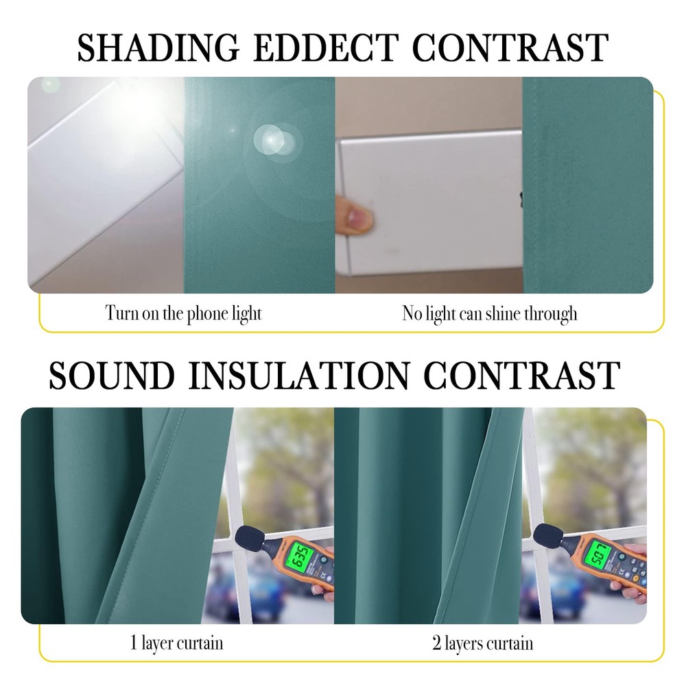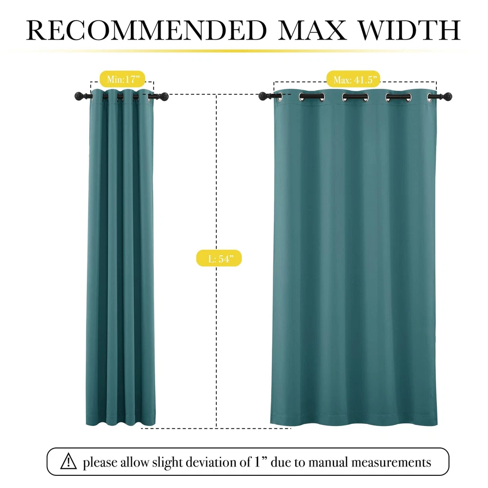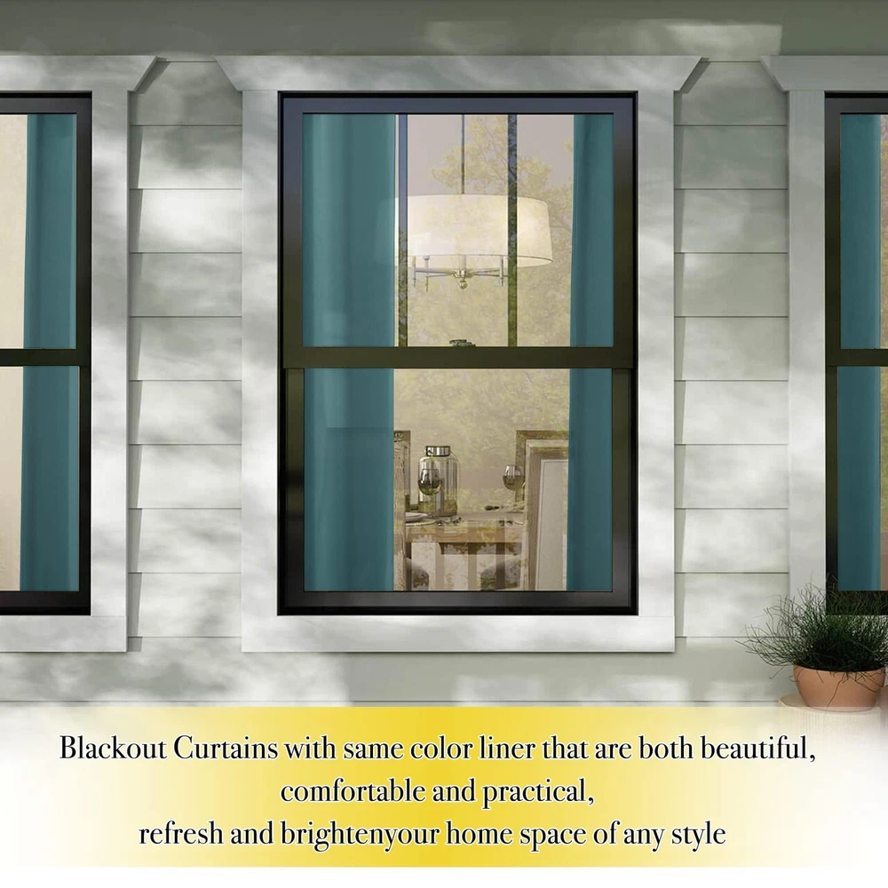 Blackout Curtains Ready Made: 2 panels per package. Each Classic Lined Curtain measures 52" wide x 54" long (Total width is 104"). The unique design of the silver grommet (1.6 inch inner diameter) creates casual elegance for your house, which makes the curtains easy to install and slide. Blackout Effect: The real blackout curtains on the market. Sew in same color liner backing makes the drapes thick enough to completely keep out the sunlight and uv ray. The benefit is to offer you a real dark environment, bringing you a good night's sleep during the day. Noise Reducing: Heavyweight Blackout Lined Curtain Panels can be a good sense of drape, making the window completely closed, to cut noise down. The effect of absorbing sound is 2 times higher than the ordinary 1 layer of curtains so that at any time you are not disturbed by noise. Unique Design: Draperies constructed with 2 layers are all triple weave blackout fabric, balancing room temperature by insulating against summer heat and winter chill meanwhile protect privacy. No coating, no formaldehyde, bring harmony to your family. Easy Care: Quality finishing will withstand years of use. Machine washable and Wash the water temperature below 86℉. Mild detergent no bleaching. Low temperature ironing. Don't use sharp things scratching curtains.