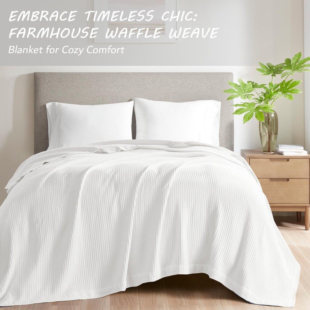 The Waffle Weave Blanket offers an added layer of warmth and comfort to your bed or couch perfect for your year round warmth Made from ultra-soft 100% cotton, this soft and lightweight blanket features tightly woven waffle weave that reduces pilling This cotton blanket is OEKO-TEX certified, meaning it does not contain any harmful substances or chemicals to ensure quality comfort and wellness Set include: 1 Blanket: 108"W x 90"L Care Instructions: Machine Wash