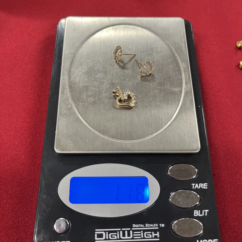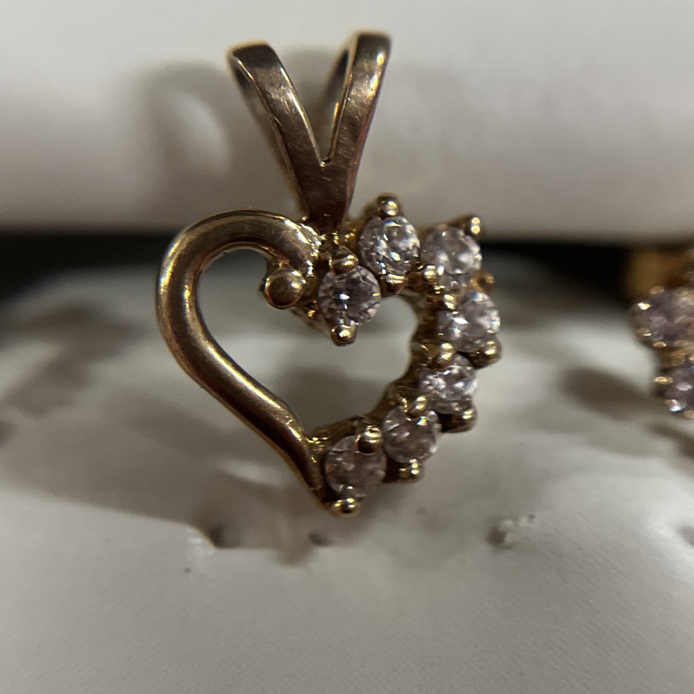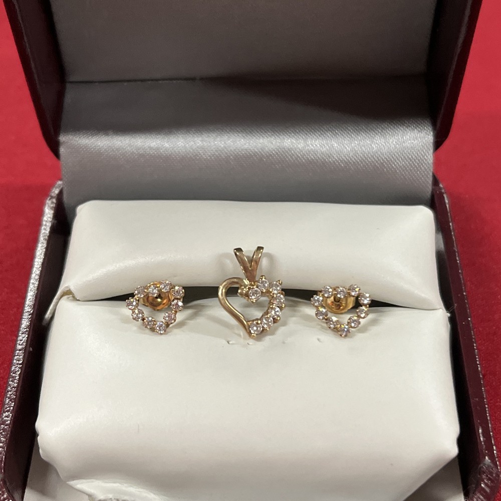 10K Yellow Gold CZ Stone Pendant And Earrings Heart Shaped Set Earring backs are not real sku nz
