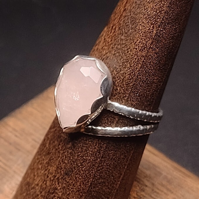 10x18mm Faceted Teardrop Rose Quartz Sterling Silver Ring Made in US - Size 7 New - Never been worn! This ring was made by me, personally. 10x18mm Faceted Teardrop Rose Quartz on a Sterling Silver ban...