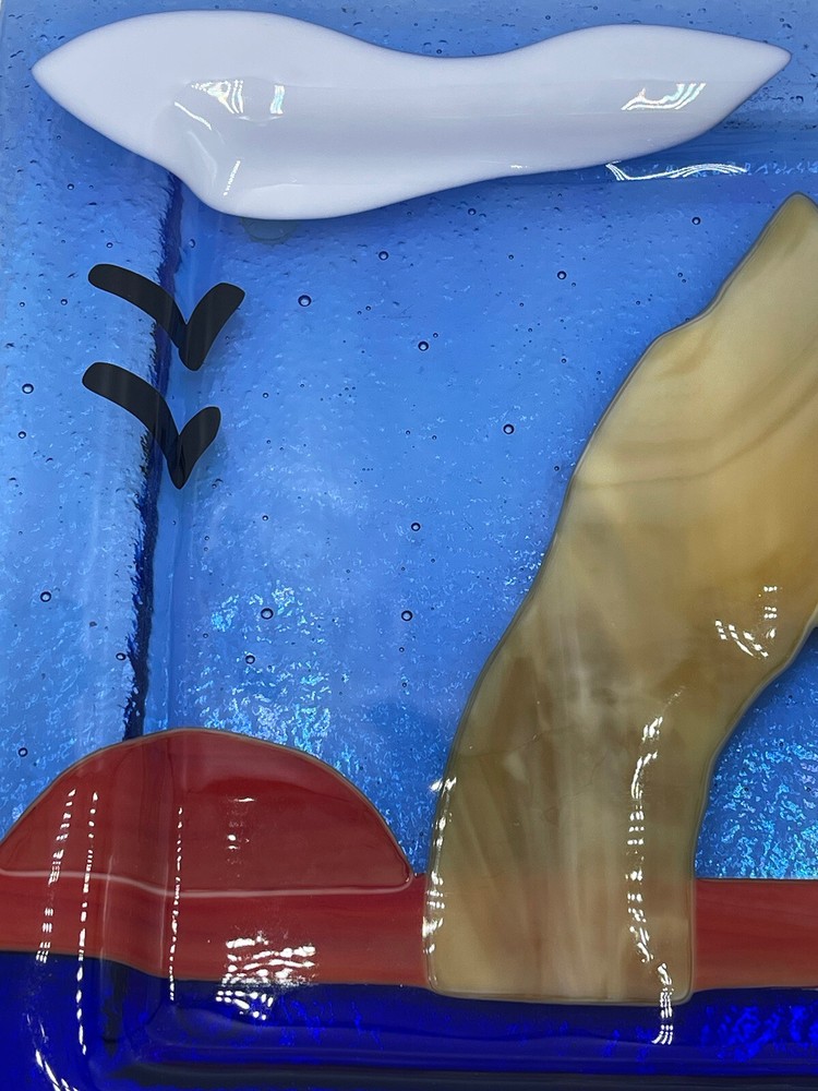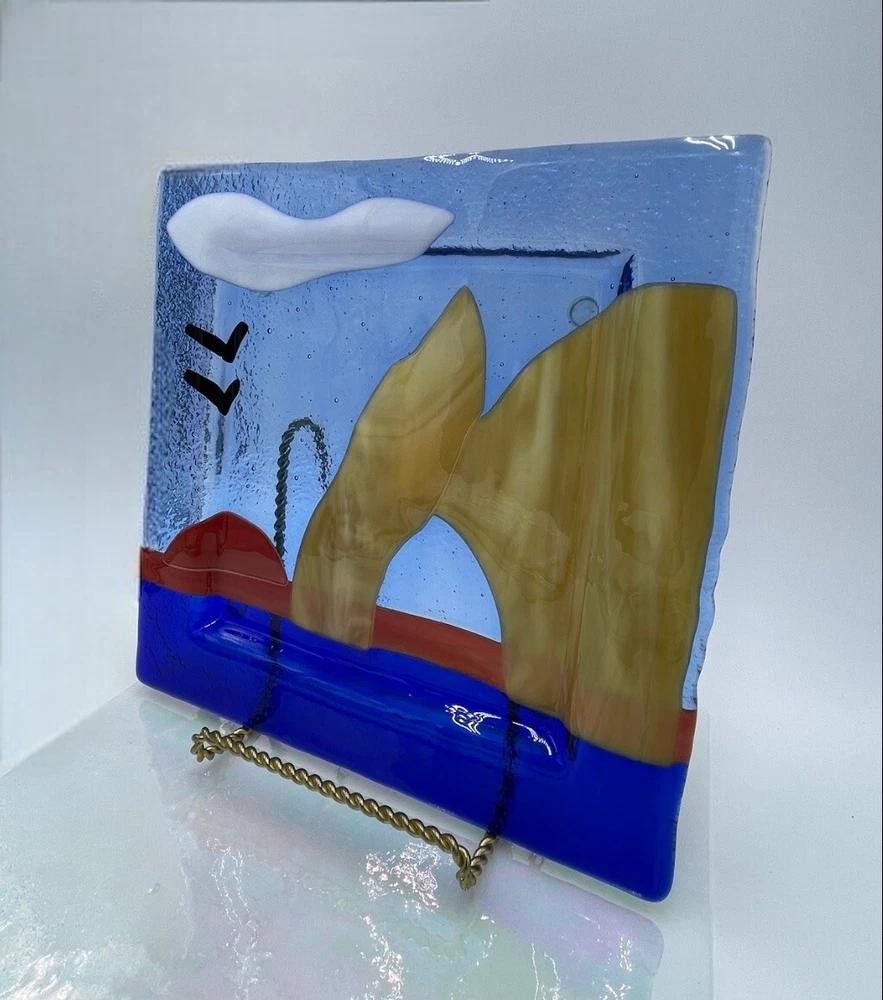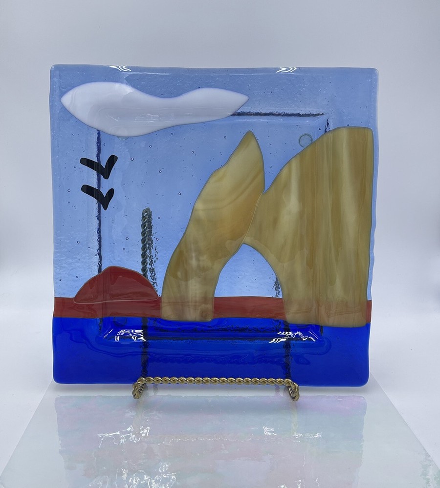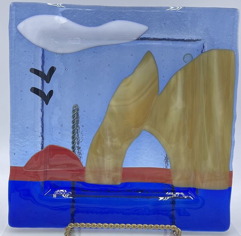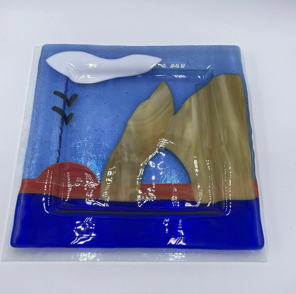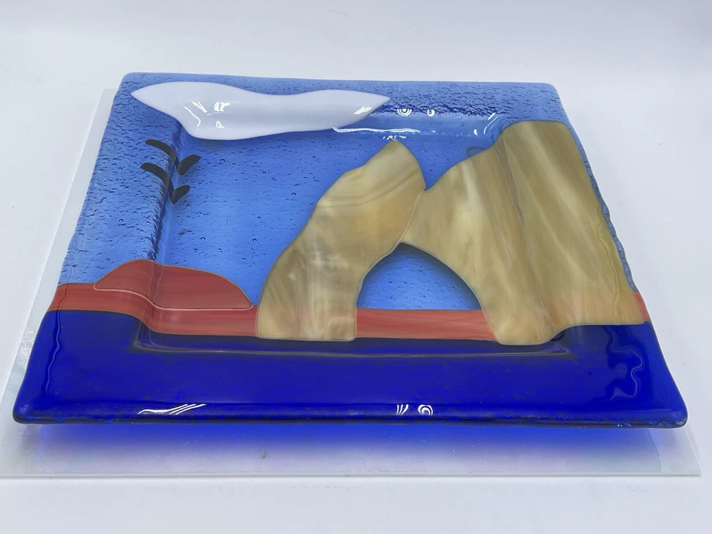 11" Large Studio Art Fused Glass Dish Platter Tray Desert Arches Scenery Design