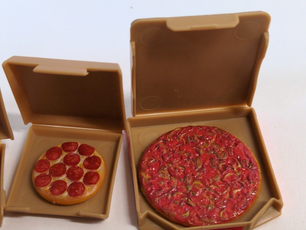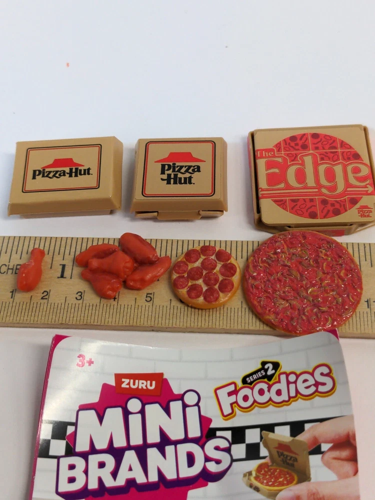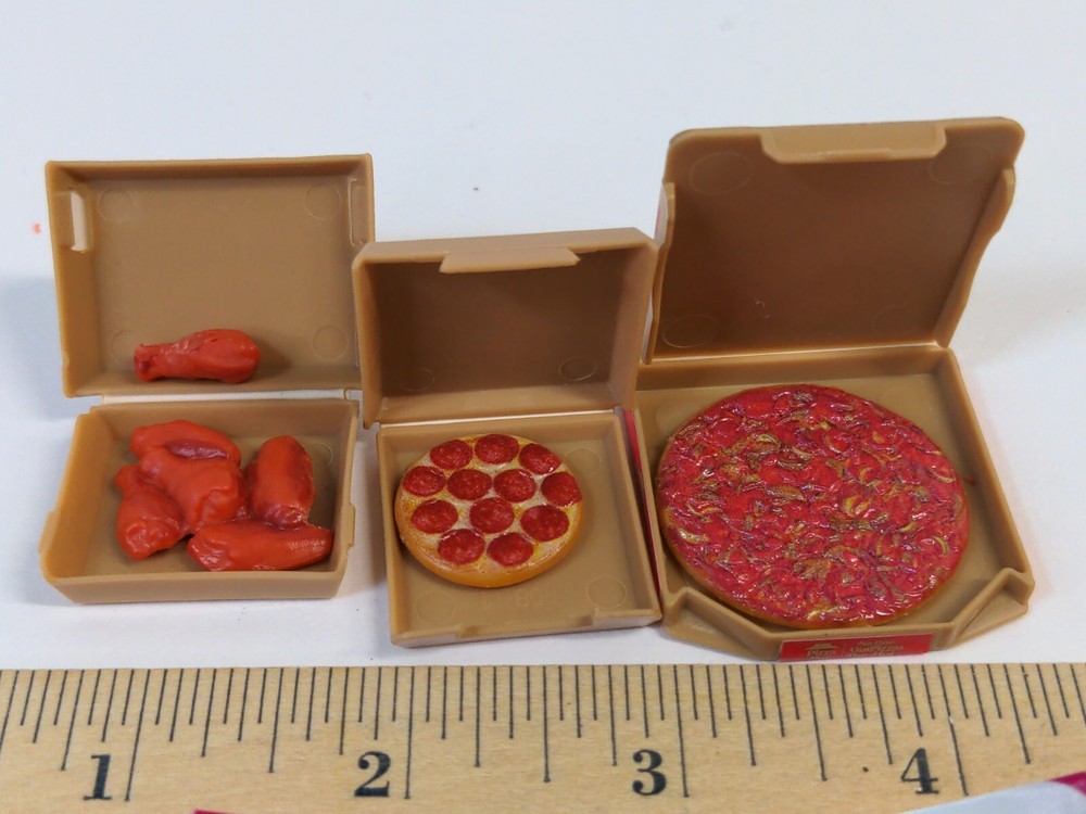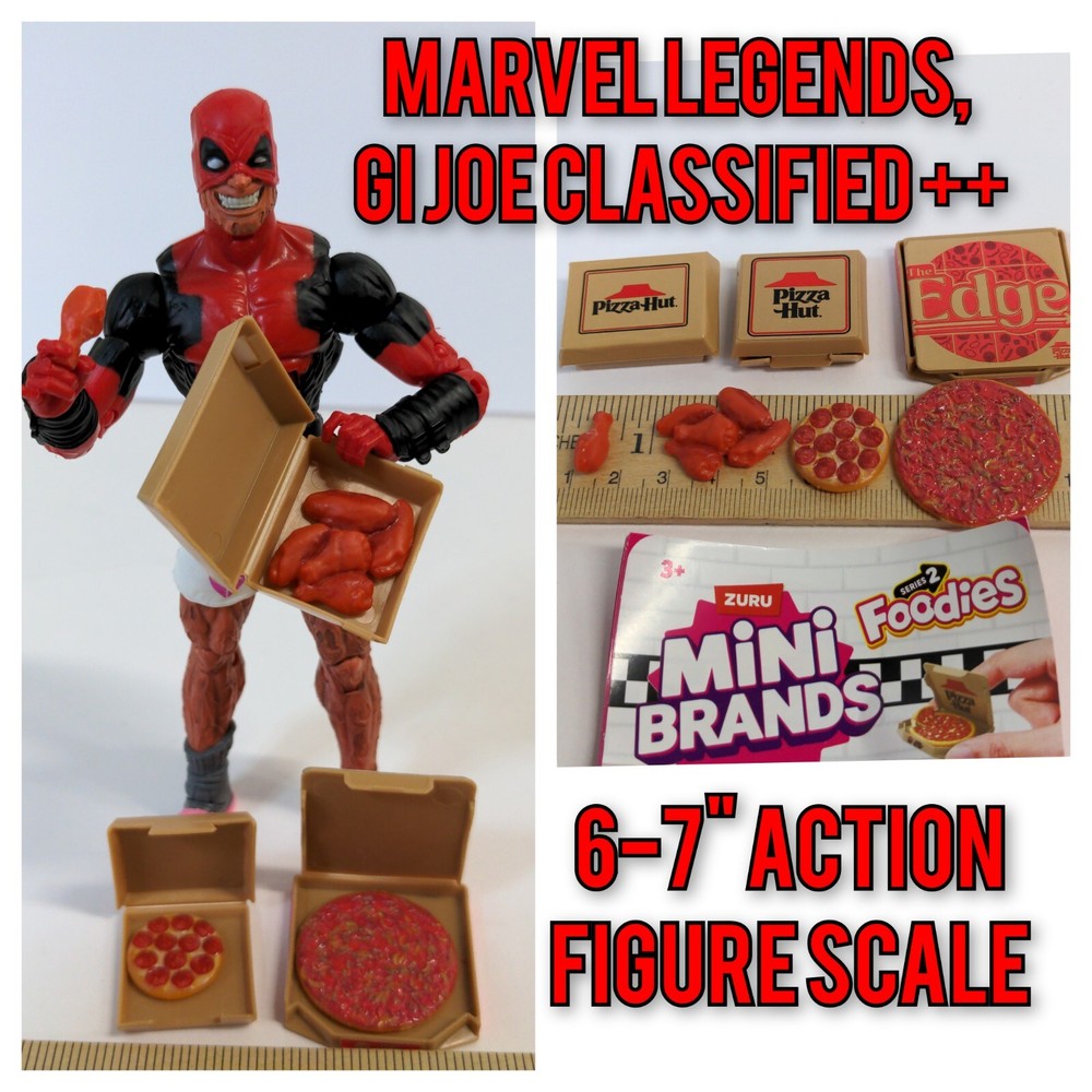 DEADPOOL ACTION FIGURE NOT INCLUDED, HE IS ONLY MODELING. HIS RATE IS $400 AN HOUR AND YOU CAN'T AFFORD HIM. THIS LOT IS FOR THREE BOXES OF PIZZA HUT FOOD. The chicken wings have been customized, One wing has been carefully separated from the rest to be held in action figures hands. All pizzas are removable, You can even cut a slice out when you get it. SEE MY OTHER MINI BRANDS LISTINGS, I WILL BE LISTING A WHOLE BUNCH, MOST COMPATIBLE WITH 1:12 AND 1:10 SCALE FIGURES. None of those annoying multiple choice listings on my store. Only single lots of exactly what I have. IF YOU WANT TO BUY MORE THAN ONE, SEND ME A MESSAGE AND I WILL GIVE YOU HEAVILY DISCOUNTED SHIPPING FOR THE ADDITIONAL PIECES BY WAY OF PARTIAL REFUND. THANKS FOR LOOKING. The item in the picture is exactly what you get. This is the only one I have on hand. Fast and secure shipping, smoke free home
