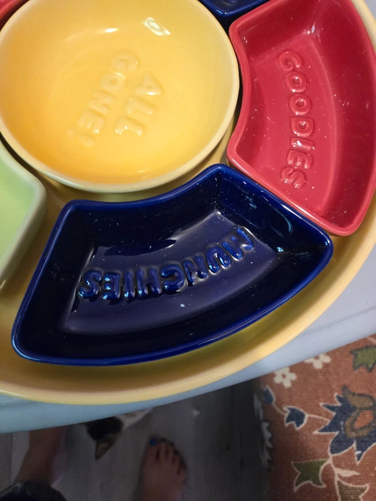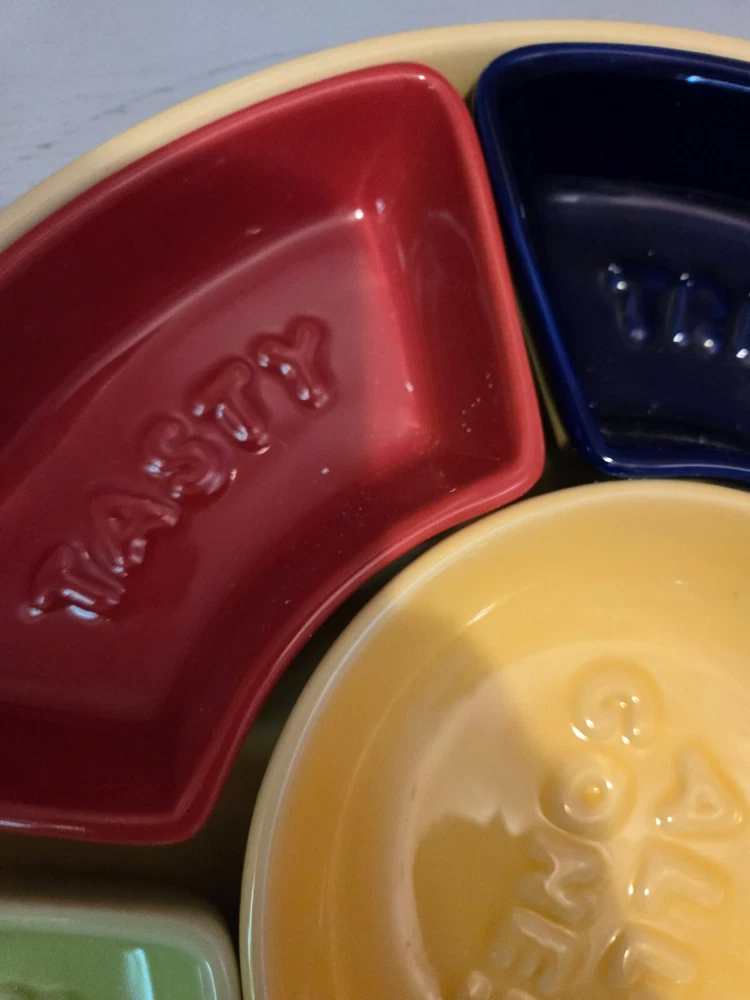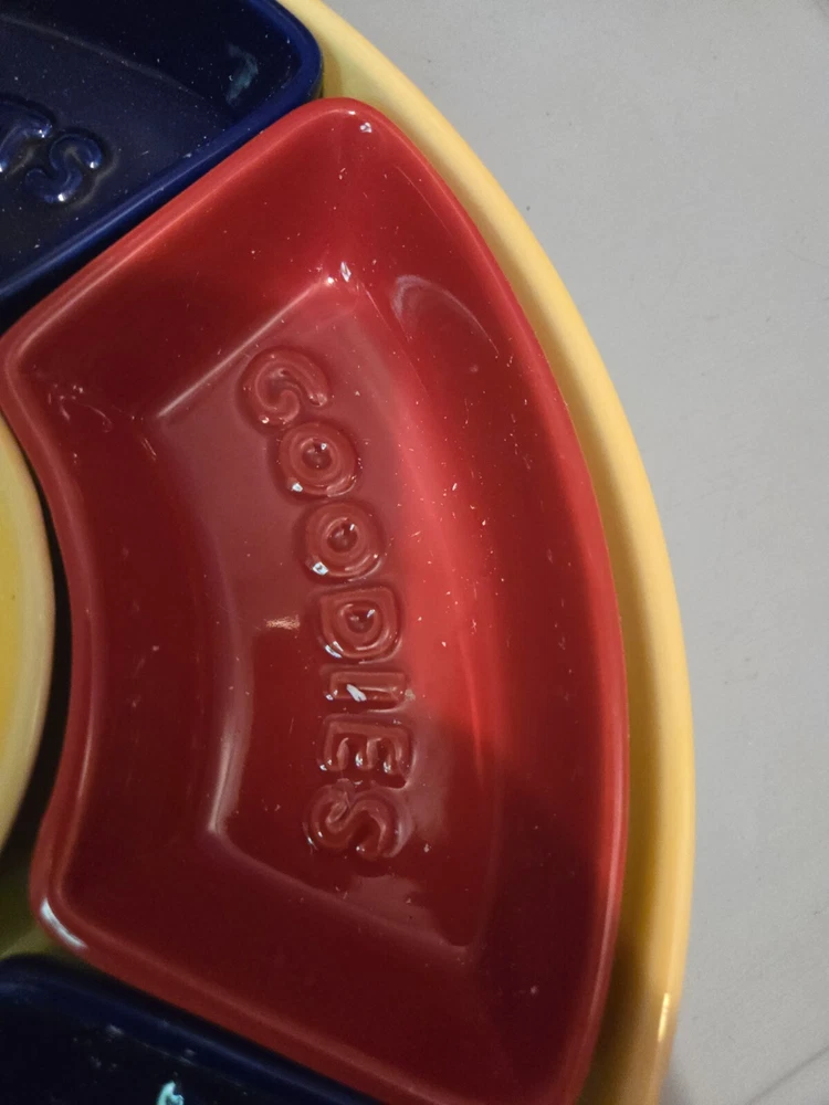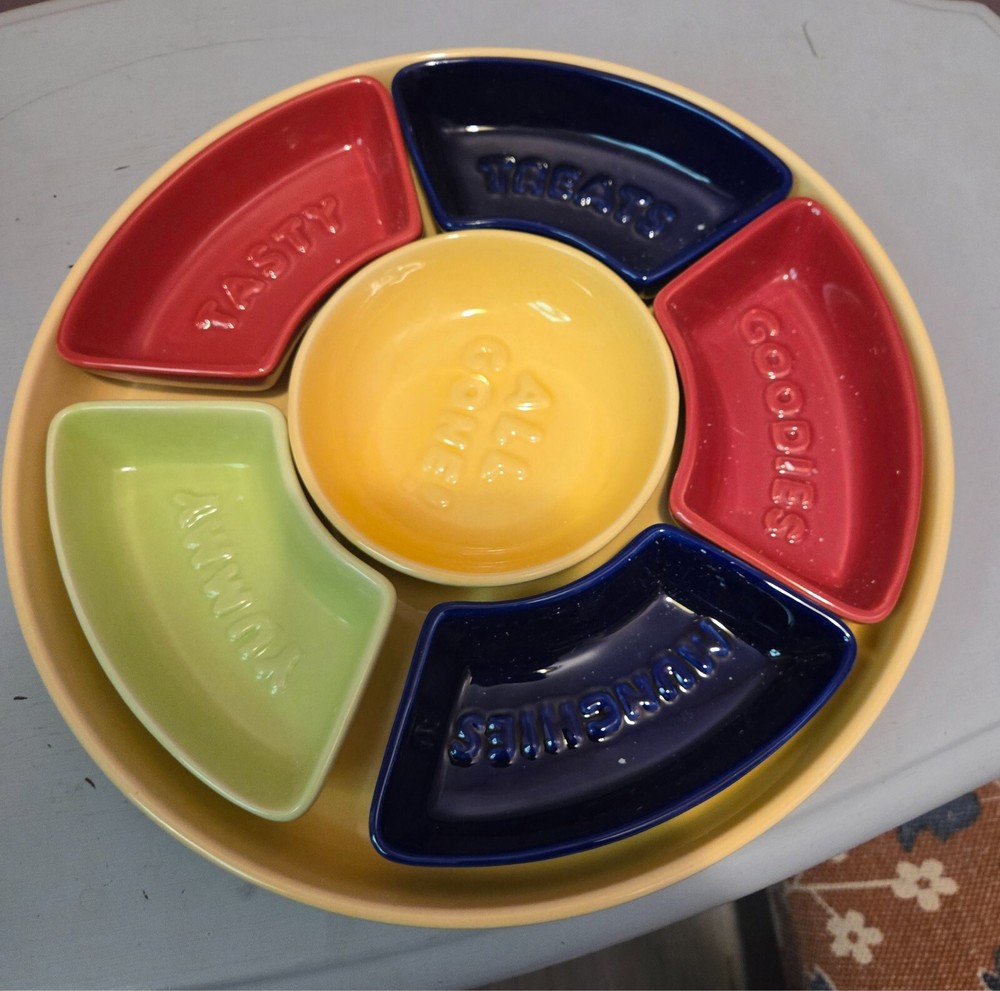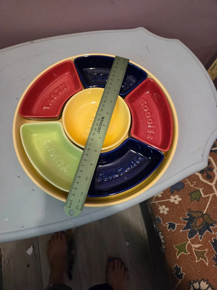 This 12" ceramic serving tray is perfect for any large gathering or party. Its round shape and divided design make it easy to serve multiple dishes, while the multicolor design adds a fun and festive touch. Made of durable ceramic material, this tray is built to last and can be enjoyed for years to come. Use it to serve chips, dips, vegetables, or fruits, and create a stunning display that will impress your guests. With its sturdy construction and ample size, this tray is sure to be a favorite for years to come.