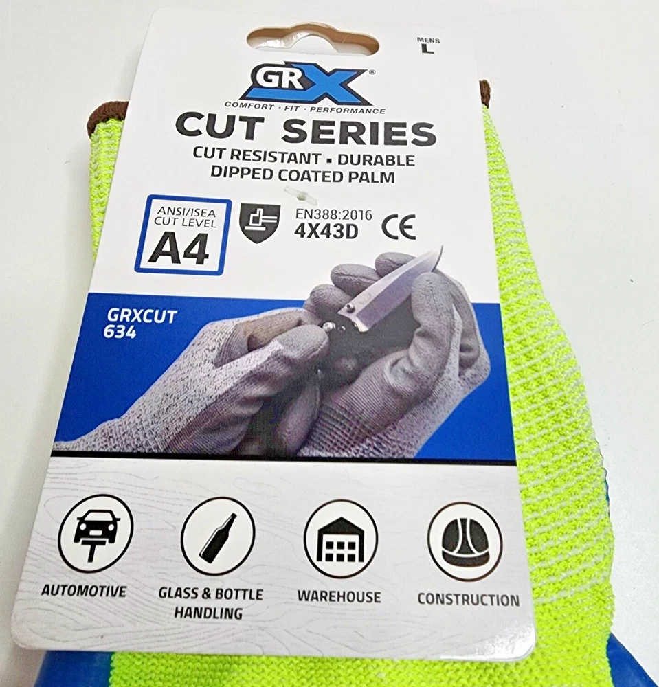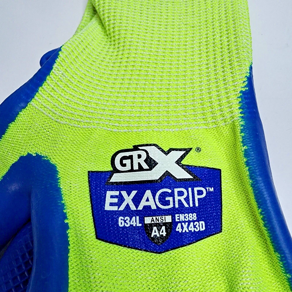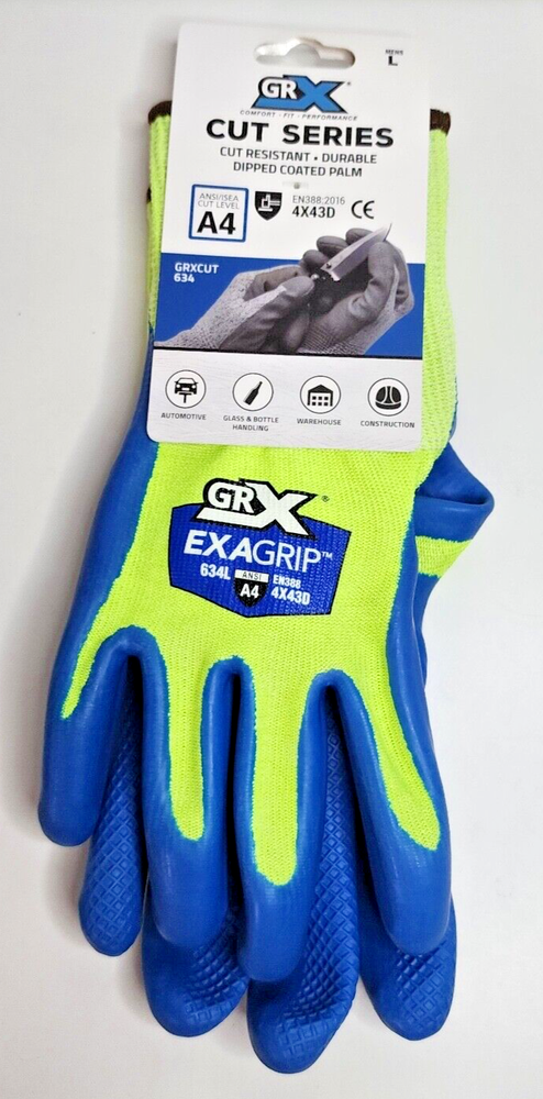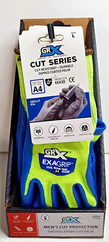Lot of 12 - NEW - GRX Cut Series Gloves EXAGRIP / Cut Resistant / ANSI Cut Level A4 Durable Dipped Coated Latex Palm Size: Large ( Need Size XL: https://www.ebay.com/itm/225529108961 ) Use: Automotive (Metal), Glass & Bottle Handling (Recycling), Warehouse, Construction, Knife / Blade Handling. FREE SHIPPING!!! Payment: PayPal accepted. Payment must clear before shipping. Shipping: See calculator for available options / Shipping address must match "bill to" address. Domestic Return Policy: This item may be returned within 30 days from the date you receive your order for refund of sale price. Shipping & Handling fees are non-refundable. Feedback Policy: When the customer is satisfied with a purchase and leaves positive feedback then we are more than happy to leave feedback in kind. Please contact us FIRST if there is a problem or concern.