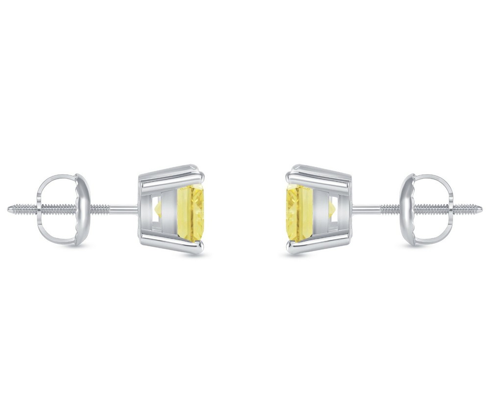 1.25 Carat Princess Cut Canary Studs Screw Back Basket Earrings in Solid 14K White Gold These exquisite created diamond stud ear rings are crafted out of solid 14k white gold and brilliant created diamonds. This design of stud earrings is one of the most desired and classy of all. They are set in a unique, secure, 4-prong designer style setting. They emit every shade of light that a natural diamond would emit. The radiance and fire of these created diamonds is equivalent if not superior to a natural diamond of a VVS1 Clarity, Canary Yellow Color, Excellent Cut. Brand --> Shine Brite With A Diamond Total Carat Weight (TCW) --> 1.25 Carat (0.625 Ct. (Approx. 5.75 mm) each) Metal --> Real, Genuine, Solid White Gold Metal Purity --> 14K (585) Gem Type --> Created Diamond Design --> Studs Main Stone Shape --> Princess, Brilliant Cut Diamond Color --> Canary Yellow Diamond Clarity --> VVS1 Setting --> 4-Prong Designer Style Type of Post or Back --> Screw Back Number of Stones --> 2 Country of Manufacture --> United States Origin of Stones --> Created Diamond Availability --> Limited Quantity EVERY GEMSTONE COMES WITH A LIFETIME GUARANTEE! Our created diamonds are guaranteed to last a lifetime or we will replace them free of charge! So What Will I Be Receiving in the Mail? A Pair of Genuine Solid 14 Karat White Gold Princess Brilliant Cut Stud Earrings . An Elegant and Luxury Jewelry Box. Certificate of Appraisal with a Lifetime Warranty. REFUNDS We guarantee your satisfaction and offer a 30-day money-back return (or exchange) policy. If for ANY reason you are unsatisfied with your purchase, please contact us first before opening up a case or leaving negative/neutral feedback so that we could make things right! We are here to help YOU! SHIPPING All items will ship free within 1 business day with USPS Priority Mail for expedited delivery. Please select the FedEx shipping options for even faster (overnight and 2-day) delivery. CONTACT US We're always available by e-mail through eBay messages 24 hours a day, 7 days a week. Please feel free to contact us anytime with any questions or concerns you may have.