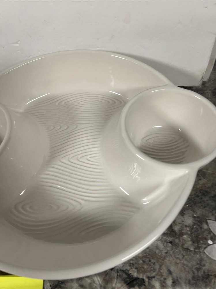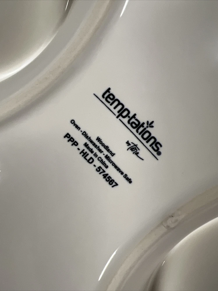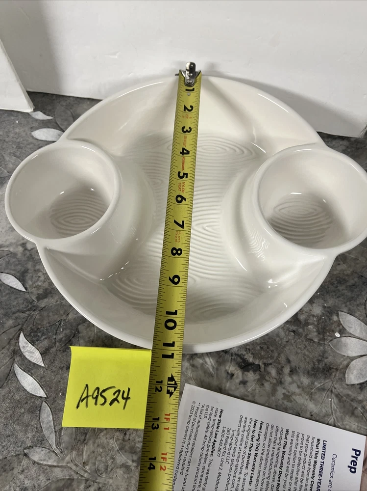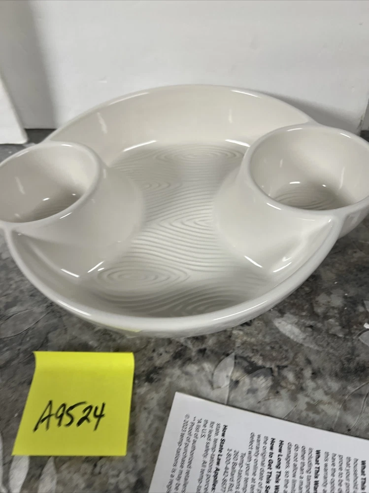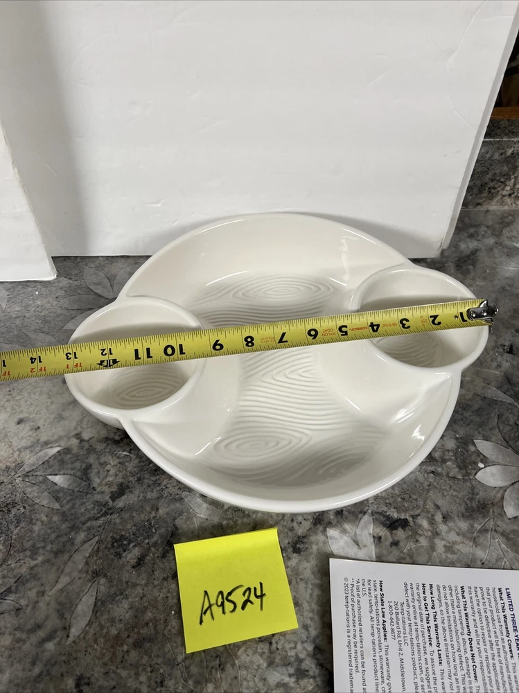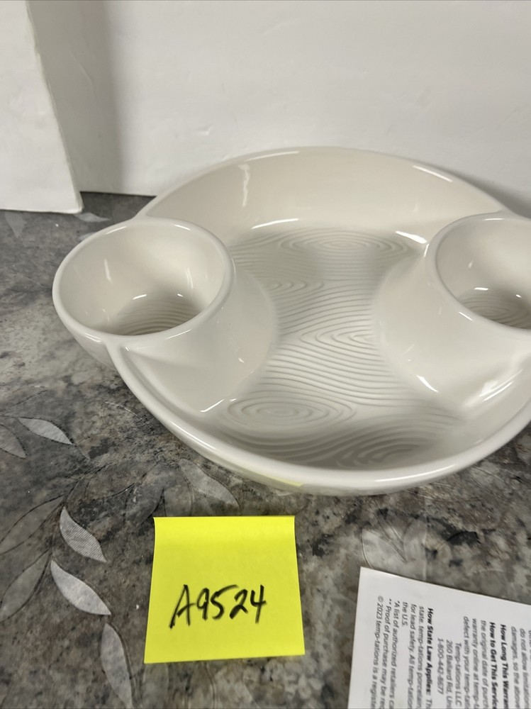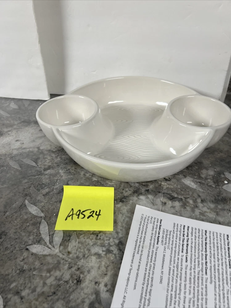 New Hard to find See photos Double dips are a do in this divided dip platter. Salsa and guac. Chocolate fudge and fruit dip. Hummus and tzatziki. The possibilities are endless. From Temp-tations® Ovenware. Floral Lace pattern Divided platter with two built-in bowls Ceramic construction Microwave-, refrigerator-, dishwasher-, and freezer-safe; oven-safe to 500F Measures 13-1/2" x 11" x 2-5/8" Imported We are a small family run business and thank you for your business. Comes from smoke free facility. Terms: Please read so there is no confusion about your purchase. *** FOR PO BOXES- If you have a PO Box and you want fedex shipping my than you will have to change the to your street address instead before paying. FedEx doesn’t ship to PO BOXES only USPS does.*** Many of our items are used misc items and used kitchen items. If the item is listed as used please see photos for condition. All used items need cleaned and have some scratches from use. Attention VeRO members: We're not affiliated with or endorsed by the companies mentioned in this listing. All trademarks and copyrights are acknowledged, they are only used for informative description of the items offered for sale. All items are authentic as evidenced in photos, legally acquired and owned, and hence covered under First Sale Doctrine. Unlawful VeRO removal of this listing will constitute perjury and result in legal action. FEEDBACK: I have a good track record regarding feedback. I am tired of stressing over feedback. There is NO reason to EVER leave me bad feedback. I offer FULL refunds with returns and that INCLUDES ME PAYING shippingj both waysides .. if it’s not as described you’re 100% covered financially INCLUDING your original shipping and the return shipping and the purchase price. Pretty good deal for buyers as this is NO RISK to you at all as I am assuming ALL risk and stand behind my products. RETURNS: If you need to return an item because I missed something all you have to do is open a return and send me a picture of what I missed. I will accept the return if I miss something EVERY TIME. Please note if you have to return an item you must return all pieces and ship in the shipping box I sent as well. RETURN PROCESS: In the unlikely event of a return where I miss something: do not email me and verbally abuse me for missing something. I am human and can miss things. My volume on eBay is really high and I don’t have the energy to deal with angry people. No reason to be angry as I will work with you and you will be out NO money so keep CALM, no reason to stress out with my store!! I got you covered! All you need to do is open a return, send me a photo and I got you covered. Once the return is open I will approve so you get a label ( that I pay for) Once I get it back your original purchase price and original shipping are refunded. 100% refunds!!! NO REASON for bad feedback!!! Shipping: ****Please make sure your address is correct before you pay as we can't change it per eBay policy. This is for your protection and ours. **** Winning bidder pays shipping Do you combine shipping for MULTIPLE ITEMS won? It automatically calculates now with the new shipping services for small items. We do not offer free shipping but our prices with shipping are generally very competitive. If you see free shipping it is because you’re not logged into your eBay account or there was an eBay error. Please check shipping quotes at time of purchase as the quoted shipping is correct. You will see this when you go to pay for the item. Most buyers know they need to be logged in but been having many ask why it’s not free when they go to pay. It’s because you were not logged in when you looked at the item but when you pay you must log in... ask before purchasing please if you have questions PLEASE READ CAREFULLY PRIOR TO BIDDING ON ITEM(S) If you are buying a used item it may have scratches scuffs. Please review all 12 photos to see condition. Photos of used items are of actual product you will receive. We do our best to note any issues we see but we are human so take a look at Pics. We take 12 pics from all angles for your review. It is very sad that I have to even mention this but if you are buying something that takes a bulb and you see it works in my photos that means the bulb worked when I listed it. I am not responsible for the longevity of a light bulb. If one burns out plan on replacing it yourself... on that note... use the same mindset for batteries. Don’t plan on batteries lasting the life of a product if I say it comes with batteries. Sad I have to even mention this and not trying to be difficult but I have lost a lot of hair because of buyers arguing about 10 cent bulbs and life of batteries.. if your a seller you get it!! :) For you scammers out there our store policy for opening claims: we will 100% of the time have claims returned to us. If you open a claim just to get a product for free it will not work with our store. We do not allow buyers to keep products if they claim damaged. We will pay to have it returned and never allow buyer to keep product. Been on eBay a long time and have seen too many scammers. Now with that said we will 100% work with all our buyers to make your purchase / potential return process as smooth as possible. Just want everyone to know if something happens in shipping or we miss something in a listing you are 100% covered we just will not allow buyer to keep products for free when scammers can just claim damaged and keep products. Just not fair YOU WILL AUTOMATICALLY RECEIVE TRACKING INFORMATION directly for the carrier once your package ships. Be sure to check your ‘junk mail’ box, as this type of email FREQUENTLY finds its way there. INTERNATIONAL SHIPPING I only ship through global shipping. When tracking is uploaded it will show as delivered at Kentucky. That is the global shipping hub. From here global shipping is in charge of the package. May take days for it to actually be delivered to your a