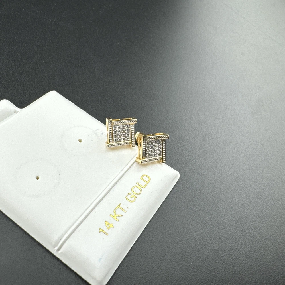 Add a touch of elegance and sparkle with these 14K Yellow Gold Iced Micro Pave CZ Square Butterfly Screw Back Earrings. Measuring 9x9mm and weighing approximately 2 grams, these earrings are the perfect combination of bold style and refined craftsmanship. Each earring features a stunning square design, meticulously paved with cubic zirconia (CZ) stones for a dazzling effect. The micro pave setting ensures maximum brilliance while maintaining a sleek and sophisticated look. The butterfly screw back closure offers a secure and comfortable fit, making these earrings ideal for both everyday wear and special occasions. Crafted from luxurious 14K yellow gold, these earrings blend timeless elegance with modern flair, perfect for those who appreciate high-quality jewelry with a touch of sparkle. Thank you for considering Beltran Jewelry for your jewelry needs. Our family-owned business boasts over 35 years of experience in the fine jewelry industry and is dedicated to delivering the highest quality products and exceptional customer service. We carefully inspect and select all of our products to ensure they meet our high standards. Shop with confidence knowing we are committed to your satisfaction. Enjoy fast shipping, and we hope to have the opportunity to serve you and become one of our treasured clients. Thank you for choosing Beltran Jewelry! At Beltran Jewelry, customer satisfaction is our top priority. If you are not completely satisfied with your purchase, please don't hesitate to reach out to us. We are dedicated to finding a resolution that works for you, ensuring you are happy with your experience. We value your business and look forward to the chance to serve you again in the future.