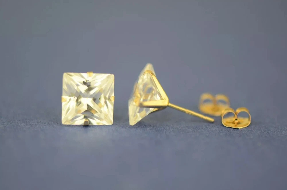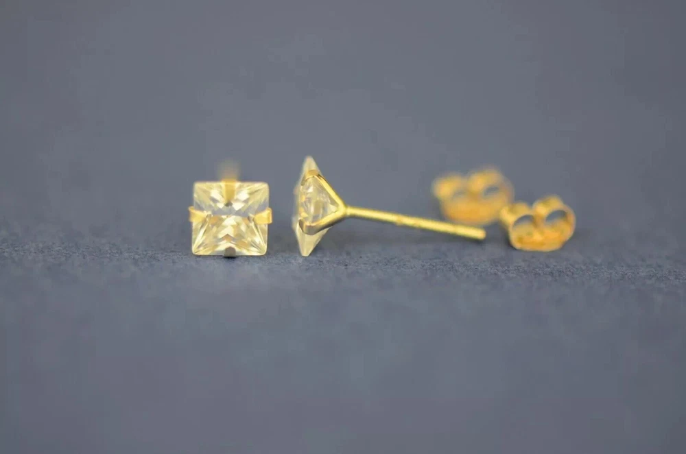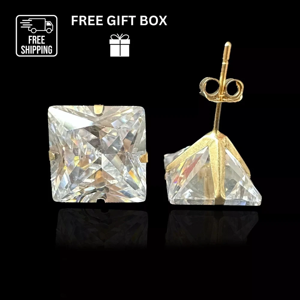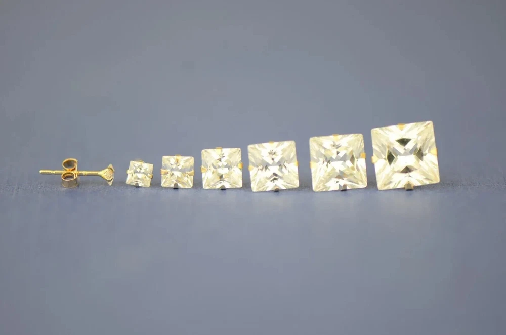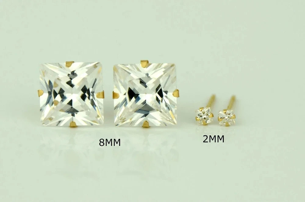 Indulge in timeless elegance with our stunning Solid 14K Yellow Gold Princess Cut Prong Set Earrings, adorned with dazzling white cubic zirconia stones. These exquisite earrings feature secure push-back fastenings for effortless wear, ensuring comfort and confidence. Crafted to perfection, they exude sophistication and charm, making them the epitome of elegance. Their classic design ensures they remain a staple accessory in any jewelry collection. Available in a range of sizes from 2x2mm to 10x10mm, these earrings offer versatility to suit every style preference. Whether worn as a single stud or paired for a complete set, they effortlessly elevate any ensemble. Meticulously crafted from solid 14K gold, these earrings promise enduring quality and a lustrous shine, making them the perfect gift to celebrate love and special occasions. Experience the allure of understated luxury with our beautiful Solid 14K Gold Square Prong Set Earrings—a gift that will be cherished for a lifetime. We Guarantee that our product is 14K Gold Terms of Sale We Accept All forms of payment Questions and Returns Feel free to reach out to us with any inquiries regarding our products, and we'll promptly provide you with the information you need. If you encounter any issues with your purchased item(s), kindly inform us before resorting to leaving negative feedback. We are committed to collaborating with our buyers to address and resolve any concerns that may arise. We extend our gratitude for your patronage, and your business is greatly valued.