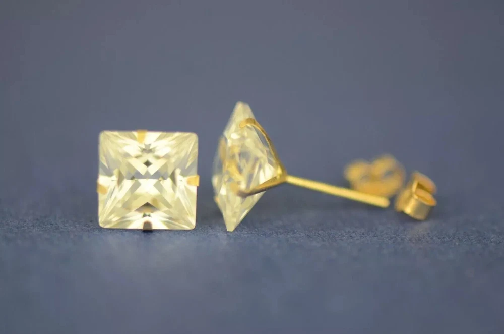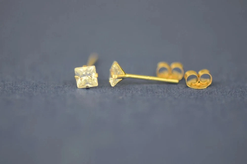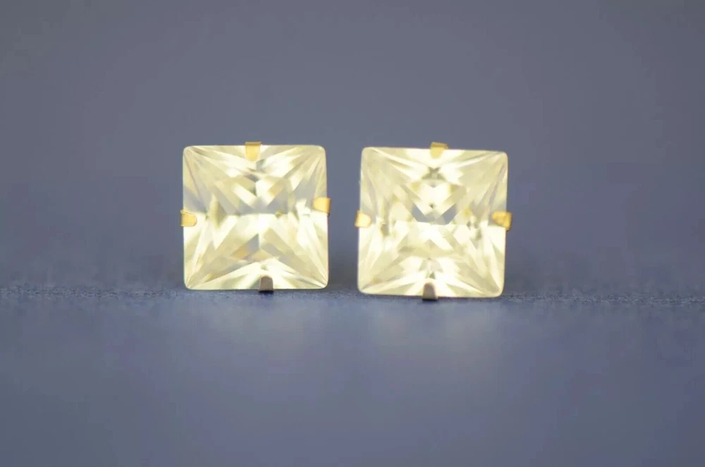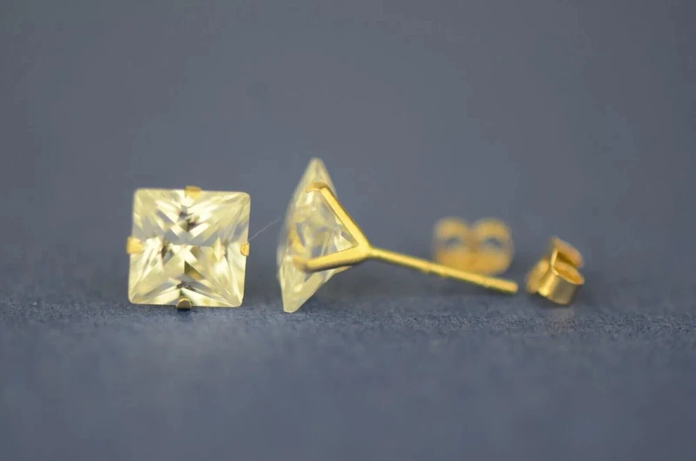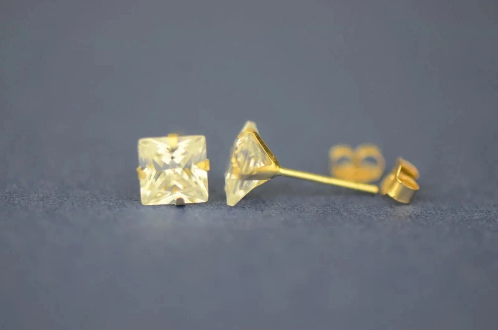 Indulge in timeless elegance with our stunning Solid 14K Yellow Gold Princess Cut Prong Set Earrings, adorned with dazzling white cubic zirconia stones. These exquisite earrings feature secure push-back fastenings for effortless wear, ensuring comfort and confidence. Crafted to perfection, they exude sophistication and charm, making them the epitome of elegance. Their classic design ensures they remain a staple accessory in any jewelry collection. Available in a range of sizes from 2x2mm to 10x10mm, these earrings offer versatility to suit every style preference. Whether worn as a single stud or paired for a complete set, they effortlessly elevate any ensemble. Meticulously crafted from solid 14K gold, these earrings promise enduring quality and a lustrous shine, making them the perfect gift to celebrate love and special occasions. Experience the allure of understated luxury with our beautiful Solid 14K Gold Square Prong Set Earrings—a gift that will be cherished for a lifetime. We Guarantee that our product is 14K Gold Terms of Sale We Accept All forms of payment Questions and Returns Feel free to reach out to us with any inquiries regarding our products, and we'll promptly provide you with the information you need. If you encounter any issues with your purchased item(s), kindly inform us before resorting to leaving negative feedback. We are committed to collaborating with our buyers to address and resolve any concerns that may arise. We extend our gratitude for your patronage, and your business is greatly valued.