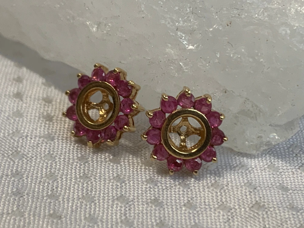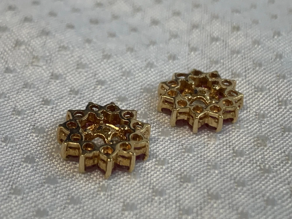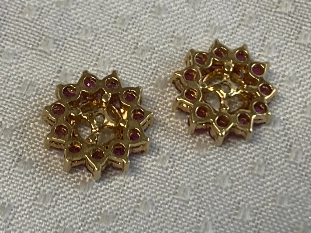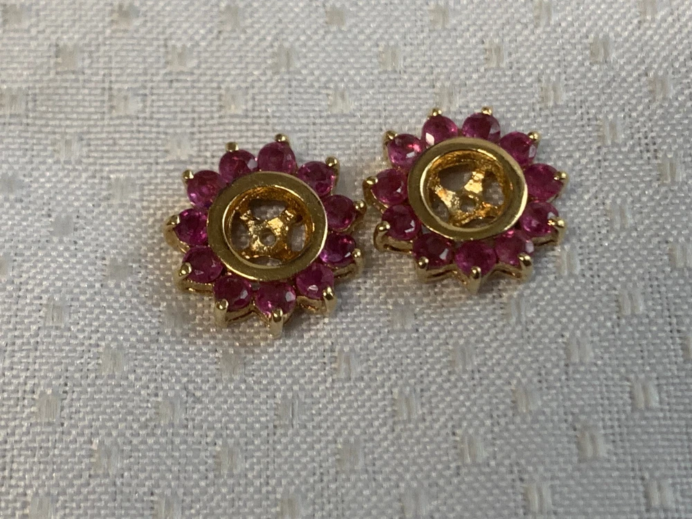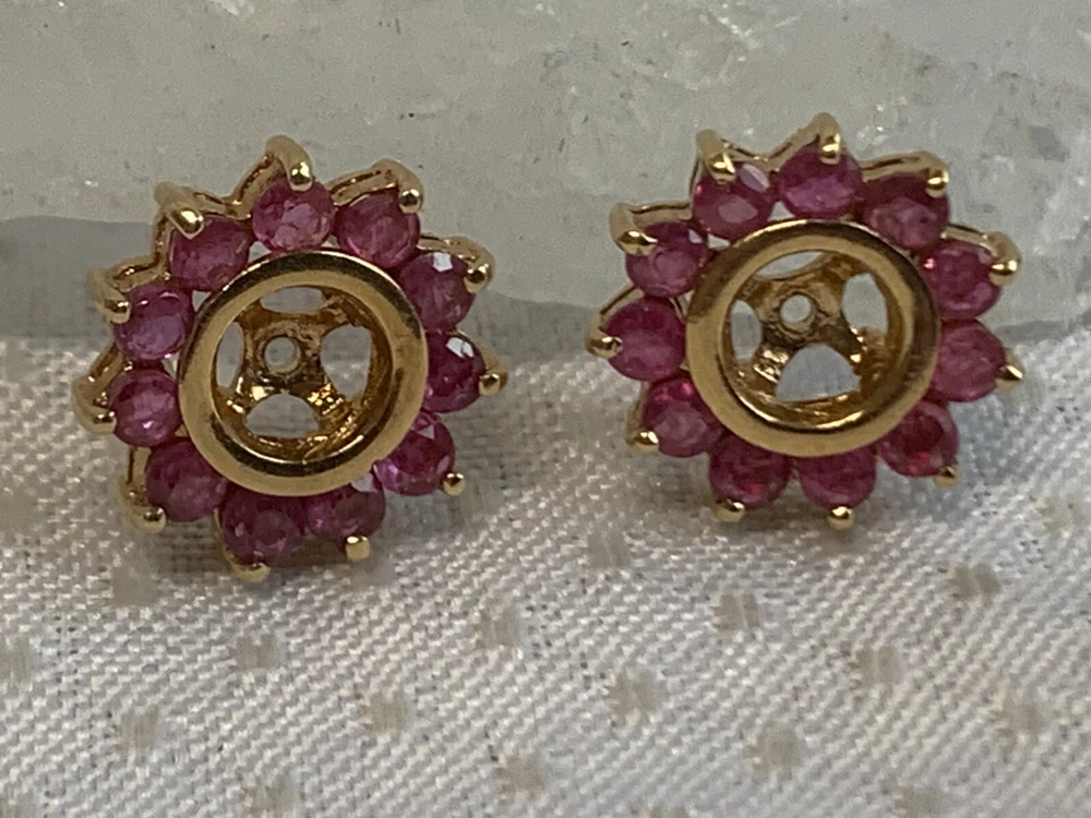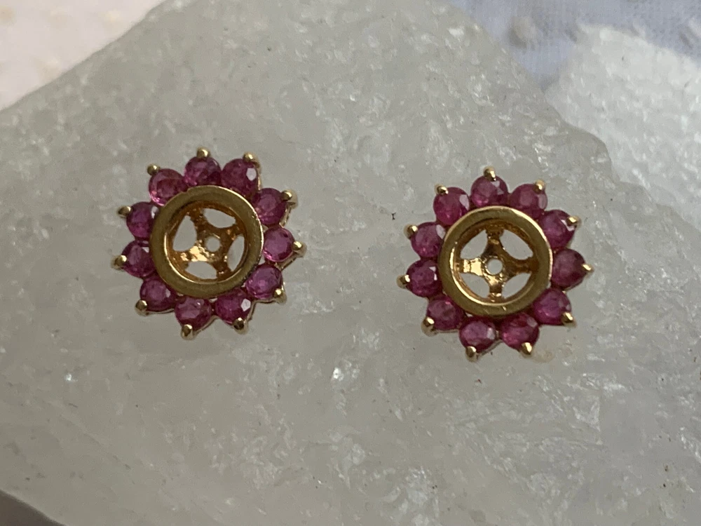 Please stop by our eBay store Sell it Baltimore to check out our other 14,000 items for sale. Our inventory changes daily so please check back often. We are not accepting offers. Prices are as listed ---Please read entire description---- You are buying : 14K Yellow Gold Stud Add-On Earrings 2.19g Fine Jewelry Rose Color Stones Approx: 11.2mm Outer Diameter 4mm Inner Diameter 1.5mm Stones 2.9mm Thick 2.19g Total Weight **The stud earring in pictures #8-9 is NOT included. It is pictured to show how the add-on earrings work.** The metal purity has been tested using an XRF machine. Earrings are pre-owned and may show signs of age and use. May need a more thorough cleaning. SOLD AS IS :) Check out our other listings for more fine jewelry options. Please look over all pictures and ASK QUESTIONS BEFORE you buy.