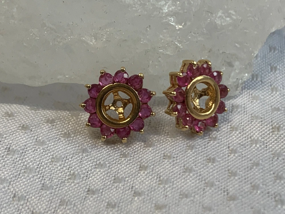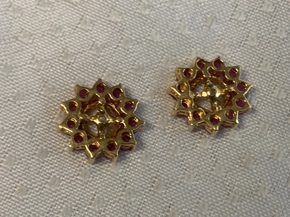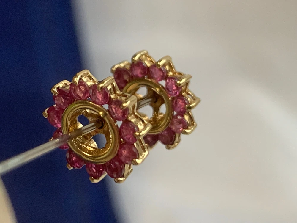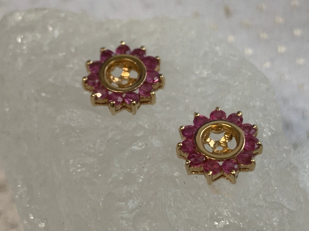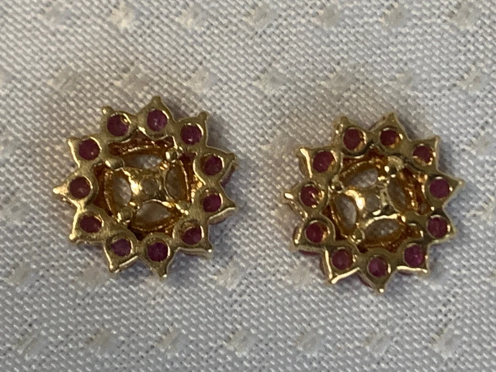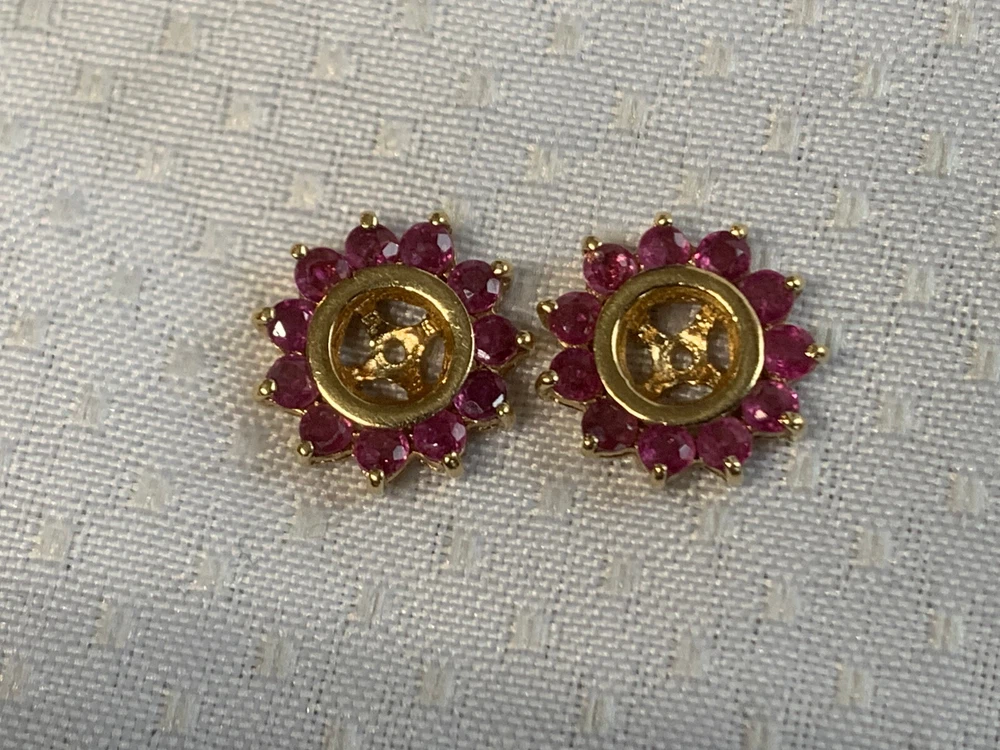 Please stop by our eBay store Sell it Baltimore to check out our other 14,000 items for sale. Our inventory changes daily so please check back often. We are not accepting offers. Prices are as listed ---Please read entire description---- You are buying : 14K Yellow Gold Stud Add-On Earrings 2.19g Fine Jewelry Rose Color Stones Approx: 11.2mm Outer Diameter 4mm Inner Diameter 1.5mm Stones 2.9mm Thick 2.19g Total Weight **The stud earring in pictures #8-9 is NOT included. It is pictured to show how the add-on earrings work.** The metal purity has been tested using an XRF machine. Earrings are pre-owned and may show signs of age and use. May need a more thorough cleaning. SOLD AS IS :) Check out our other listings for more fine jewelry options. Please look over all pictures and ASK QUESTIONS BEFORE you buy.