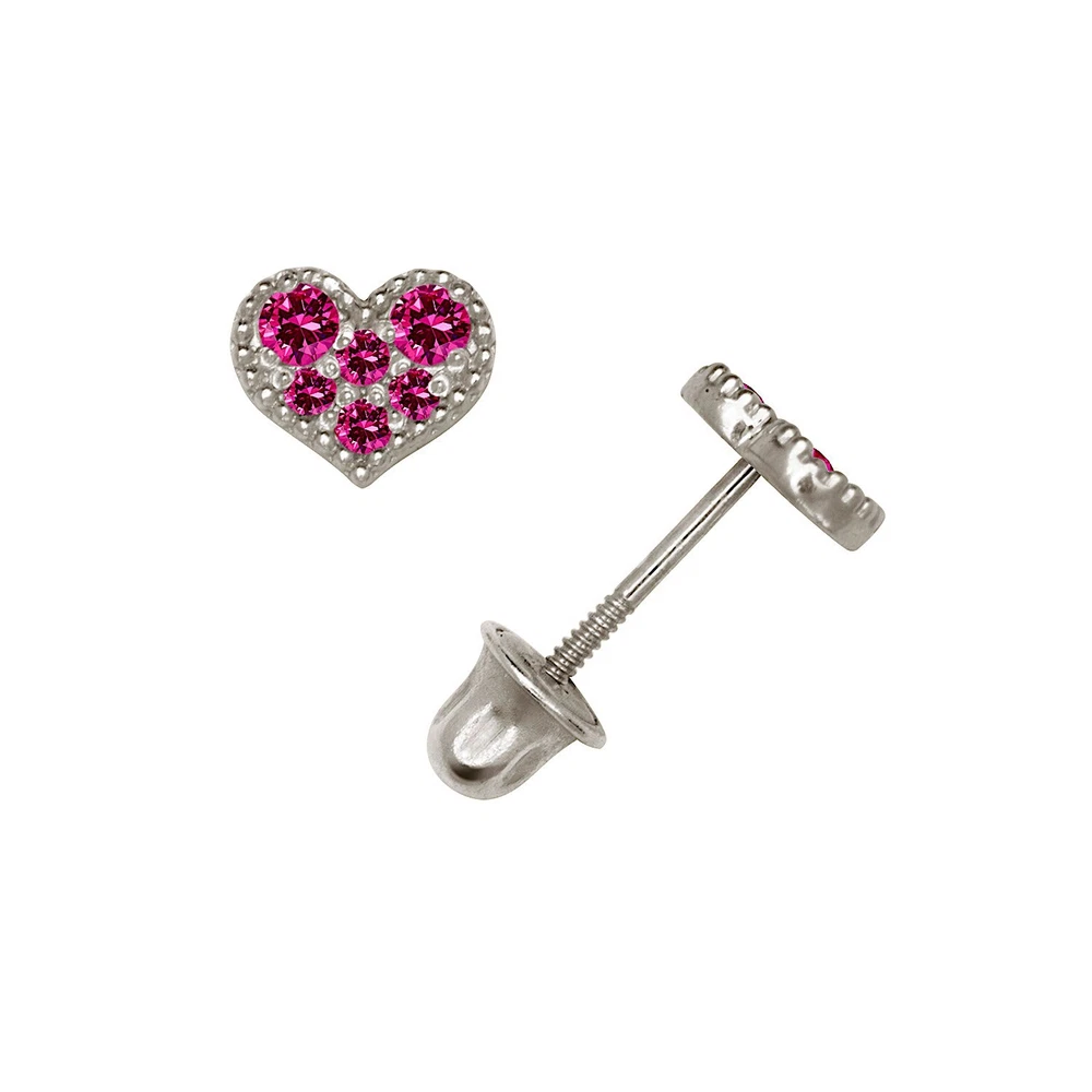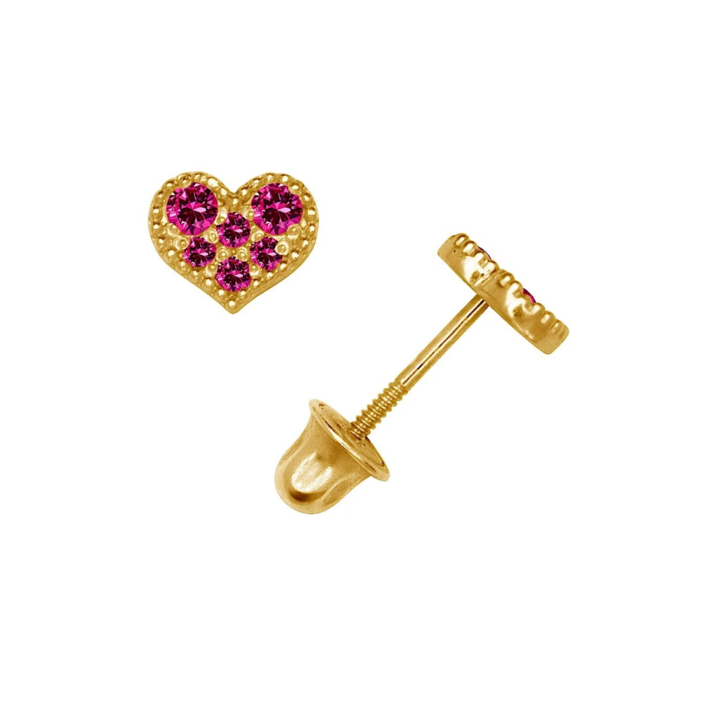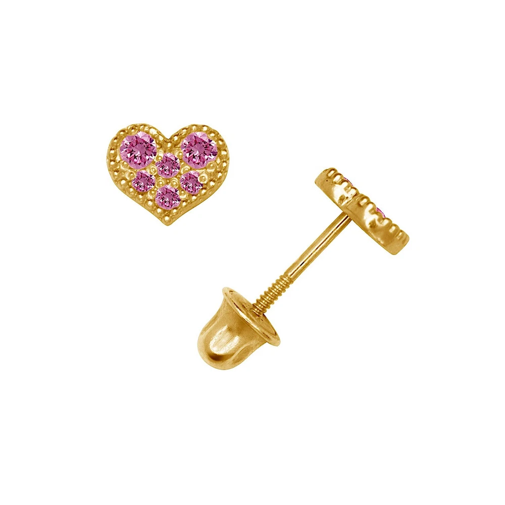 14K Gold CZ Heart Stud Earrings for Women - Yellow & White