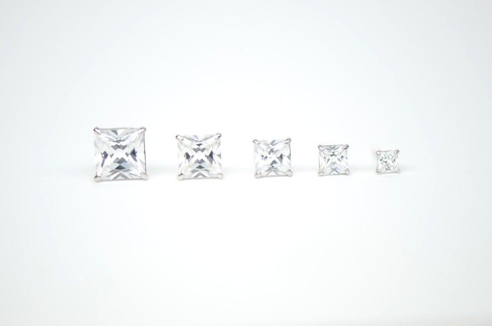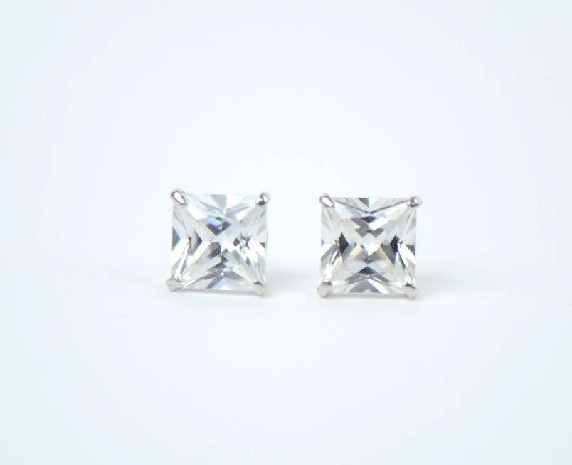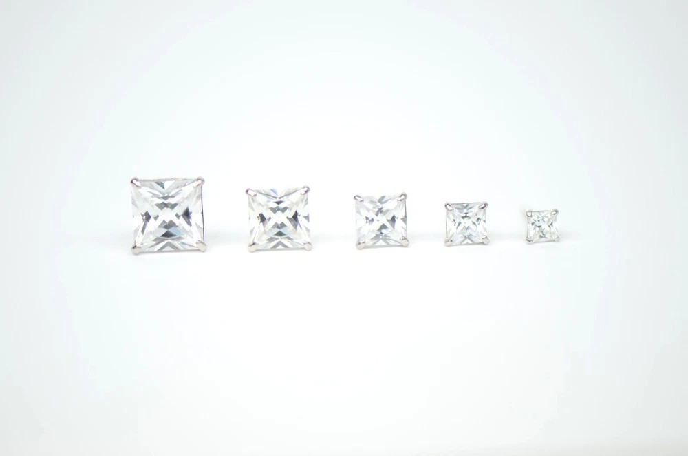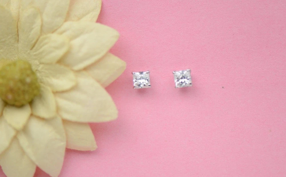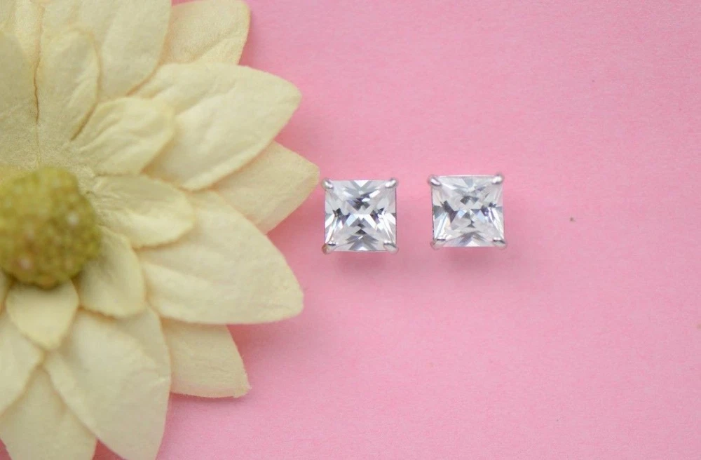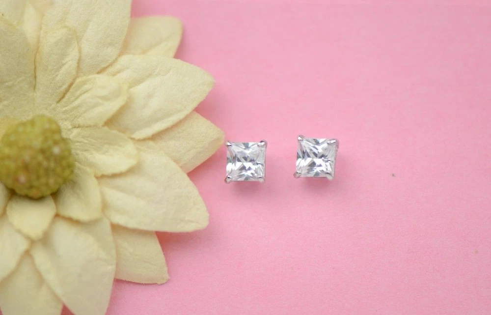 These stunning princess-cut CZ studs are a must-have! The 14k white gold gives them a luxurious look, while the screw backs keep them secure all day. The sparkle is unreal—no one will guess they're not diamonds! Perfect for everyday wear, they effortlessly elevate any outfit. Love that they come in multiple sizes and include a gift box. Such great quality for the price—definitely worth it!