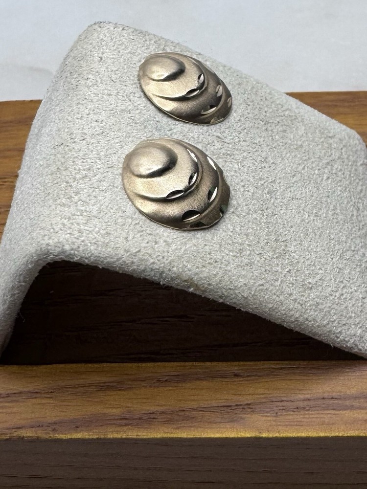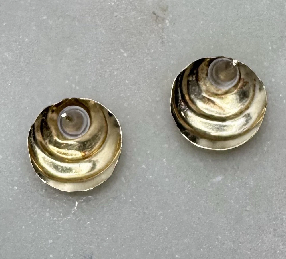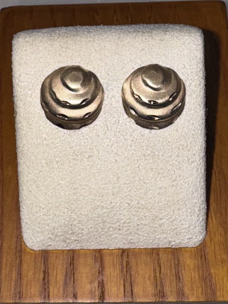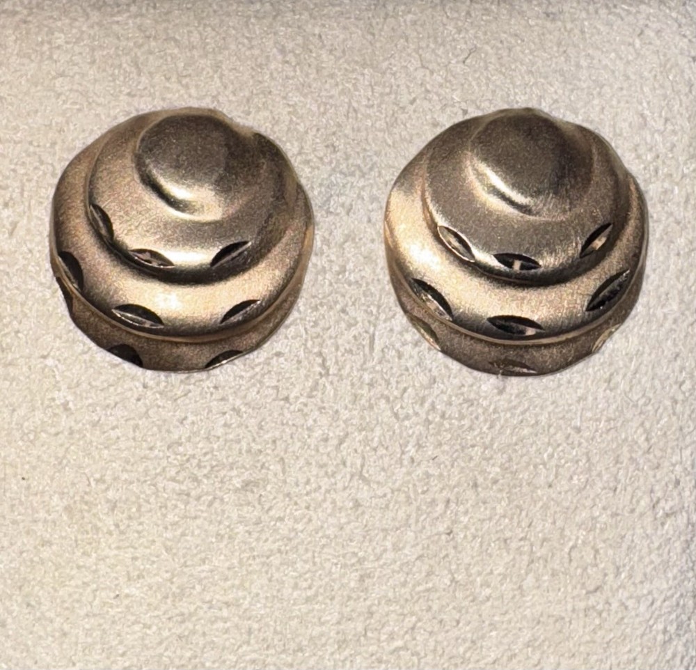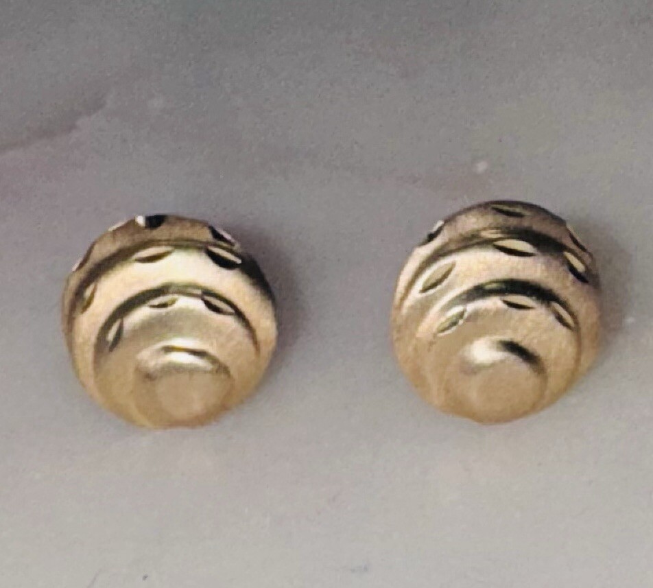 These elegant 14k yellow gold ribbed disk earrings offer a unique vintage-inspired look with a stylish ribbed texture. Crafted in a classic round dome shape, these earrings are lightweight and comfortable for everyday wear or special occasions. With a secure post back, they add a subtle touch of luxury and sophistication to any jewelry collection. The textured design reflects light beautifully, creating a subtle, radiant effect. • Material: 14k Yellow Gold • Style: Ribbed Disk Round Stud Earrings • Condition: very good vintage condition • Back Type: Post pierced Perfect For: Gift-giving, elegant daily wear, and adding a unique touch to vintage-inspired collections. Keywords: 14k Yellow Gold Disk Earrings, Ribbed Gold Round Earrings, Textured Dome Studs, Vintage Gold Stud Earrings, Fine Gold Post Earrings SSB6