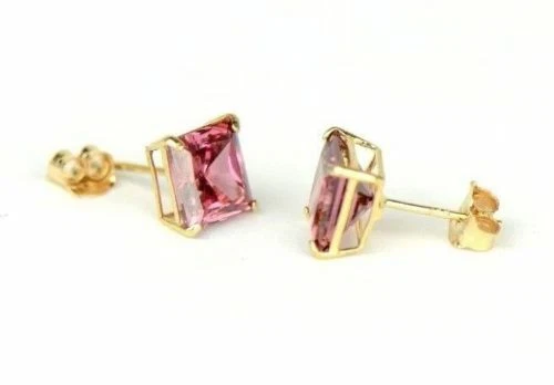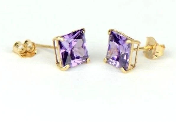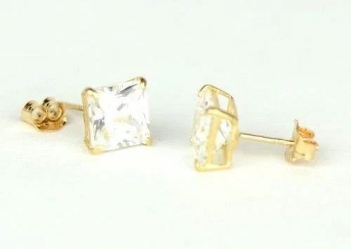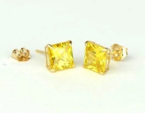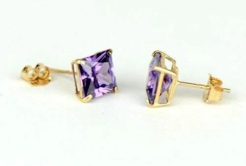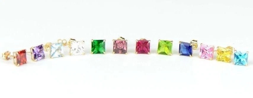 This is 14K Yellow Gold Push Back Earrings with CZ (Cubic Zirconia stone) that have become a classic. You can wear them day-by-day they will match with any close. The earrings are studs with the post which length is 9.25 mm. The stone is square shape. The stone secure with Prong Set. Available in 4, 5, 6 mm with push back, Also in white and yellow gold. All stones are in order according to months. January - Red color Garnet (Lab Corundum), February - Purple color Amethyst (Cubic Zirconia), March - Aqua color Aquamarine (Lab Spinel), April - Clear color Diamond (Cubic Zirconia), May - Green color Emerald (Cubic Zirconia), June - Lavender color Alexandrite (Lab Corundum), July - Dark pink color Ruby (Lab Corundum), August - Green light Peridot (Cubic Zirconia), September - Blue Dark color Sapphire (Lab Spinel), October - Pink color Pink Tourmaline (Cubic Zirconia), November - Yellow color Topaz (Cubic Zirconia), December - Blue color Zircon (Lab Spinel). (stones sometimes can be little darker or little liter than on the picture). This pair of earrings comes with a free gift box (colors of gift box will be chosen randomly). We guarantee that our product is 14K Gold. Take a look at our store Noah Jewelry . If you have any questions feel free to contact us. GO TO: noahsjewelry