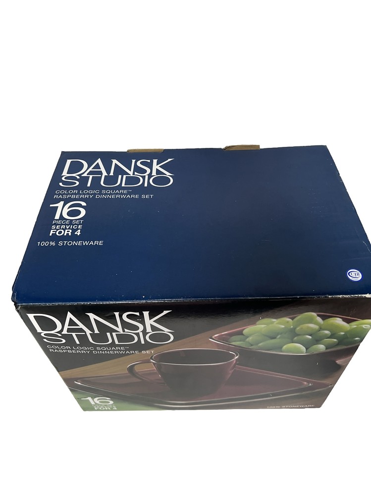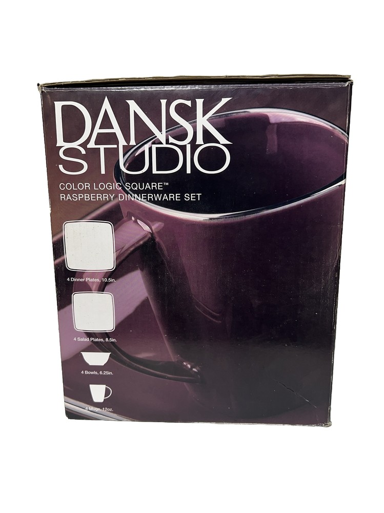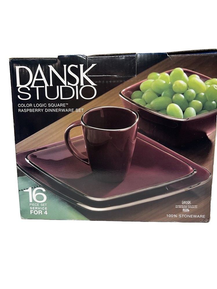 This 16-piece dinnerware set from Dansk is a perfect addition to your kitchen collection. The set includes four place settings, each of them featuring a rasberry color with brown trim. The Color Logic Collection is made of durable stoneware, making it both microwave safe and dishwasher safe. This complete set is perfect for hosting dinner parties or for daily use. The solid pattern and contemporary design of this set will surely impress your guests. Get your hands on this new Dansk dinnerware set and elevate your dining experience.