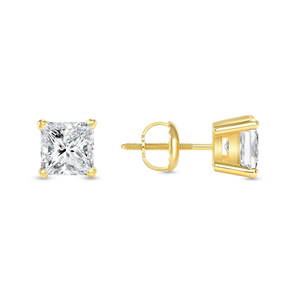1.75 Carat Princess Brilliant Cut Solitaire Stud Screw Back Basket Earrings in Solid 18K Yellow Gold These exquisite simulated diamond stud ear rings are crafted out of solid 18K Yellow gold and brilliant simulated diamonds. This design of stud earrings is one of the most desired and classy of all. They are set in a unique, secure, 4-prong designer style setting. They emit every shade of light that a natural diamond would emit. The radiance and fire of these simulated diamonds is equivalent if not superior to a natural diamond of a VVS1 Clarity, D Color, Excellent Cut. Brand --> Shine Brite With A Diamond Total Carat Weight (TCW) --> 1.75 Carat (0.875 Ct. (Approx. 6.25 mm) each) Metal --> Real, Genuine, Solid Yellow Gold Metal Purity --> 18K (750) Gem Type --> Simulated Diamond Design --> Studs Main Stone Shape --> Princess, Brilliant Cut Diamond Color --> D Diamond Clarity --> VVS1 Setting --> 4-Prong Designer Style Type of Post or Back --> Screw Back Number of Stones --> 2 Country of Manufacture --> United States Origin of Stones --> Simulated Diamond Availability --> Limited Quantity EVERY GEMSTONE COMES WITH A LIFETIME GUARANTEE! Our simulated diamonds are guaranteed to last a lifetime or we will replace them free of charge! So What Will I Be Receiving in the Mail? A Pair of Genuine Solid 18 Karat Yellow Gold Princess Brilliant Cut Stud Earrings . An Elegant and Luxury Jewelry Box. Certificate of Appraisal with a Lifetime Warranty. REFUNDS We guarantee your satisfaction and offer a 30-day money-back return (or exchange) policy. If for ANY reason you are unsatisfied with your purchase, please contact us first before opening up a case or leaving negative/neutral feedback so that we could make things right! We are here to help YOU! SHIPPING All items will ship free within 1 business day with USPS Priority Mail for expedited delivery. Please select the FedEx shipping options for even faster (overnight and 2-day) delivery. CONTACT US We're always available by e-mail through eBay messages 24 hours a day, 7 days a week. Please feel free to contact us anytime with any questions or concerns you may have.